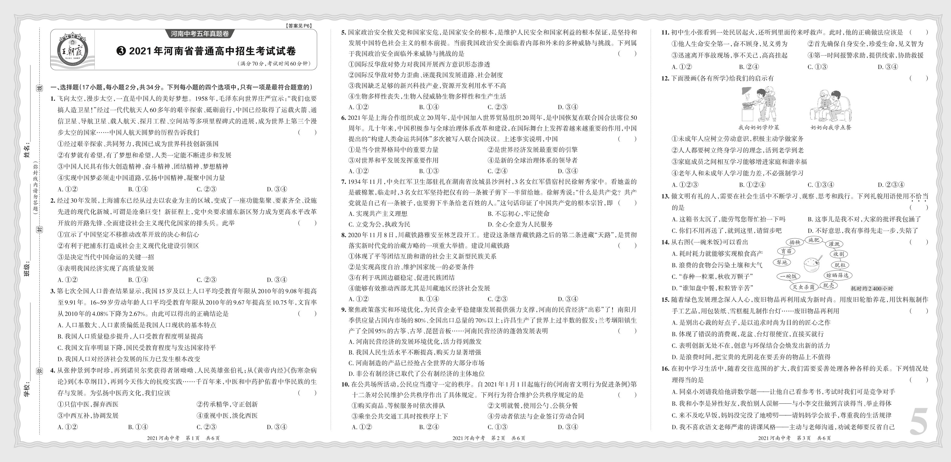 2021年河南省普通高中招生考试试卷·道德与法治【3】