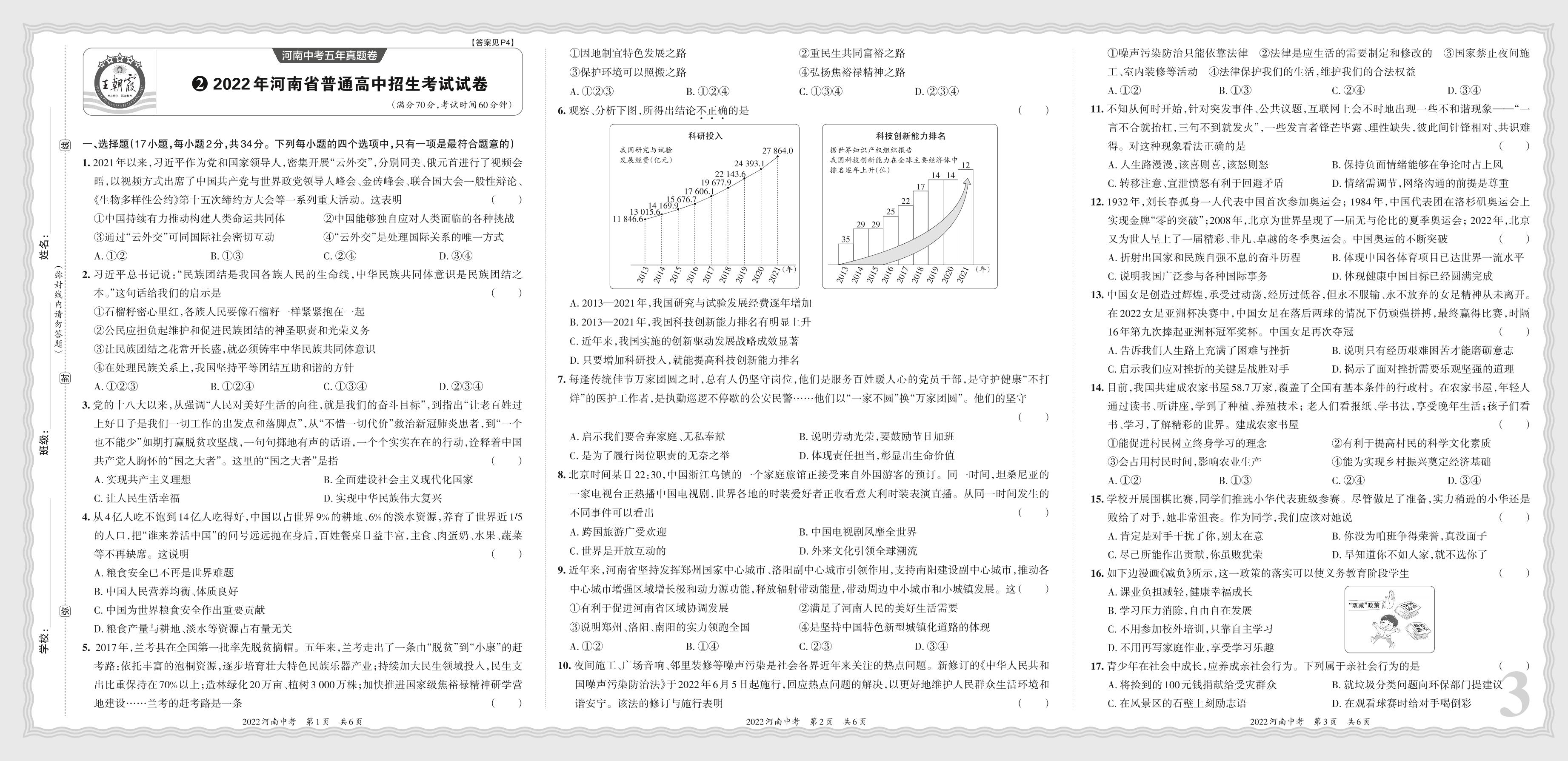 2022年河南省普通高中招生考试试卷·道德与法治【2】
