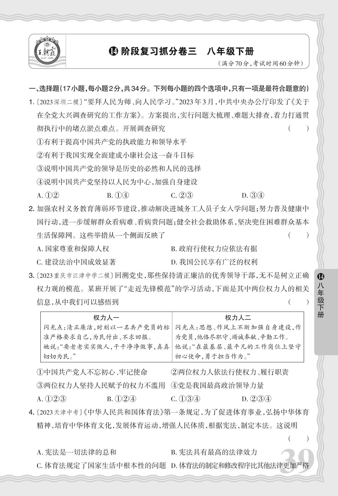 河南中考阶段复习抓分卷三 八年级下册·道德与法治【14】
