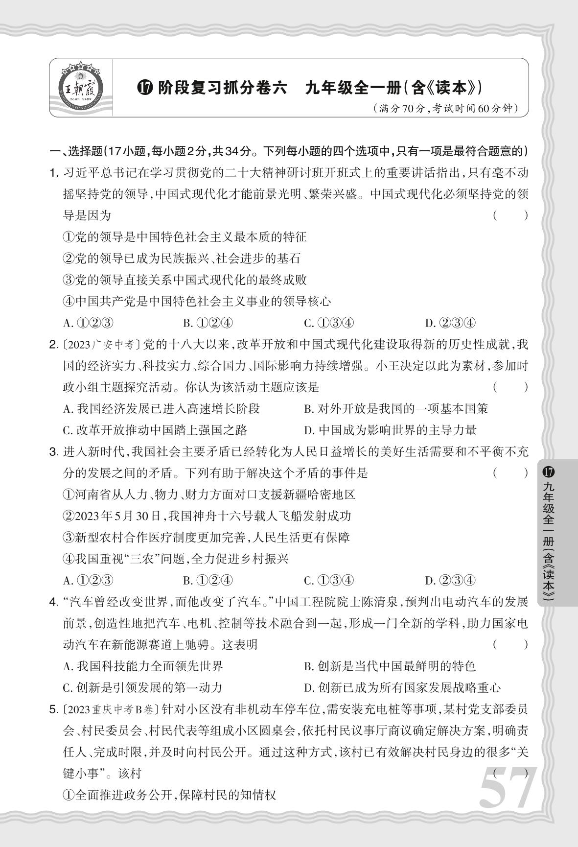 河南中考阶段复习抓分卷六 九年级全一册(含《读本》)·道德与法治【17】