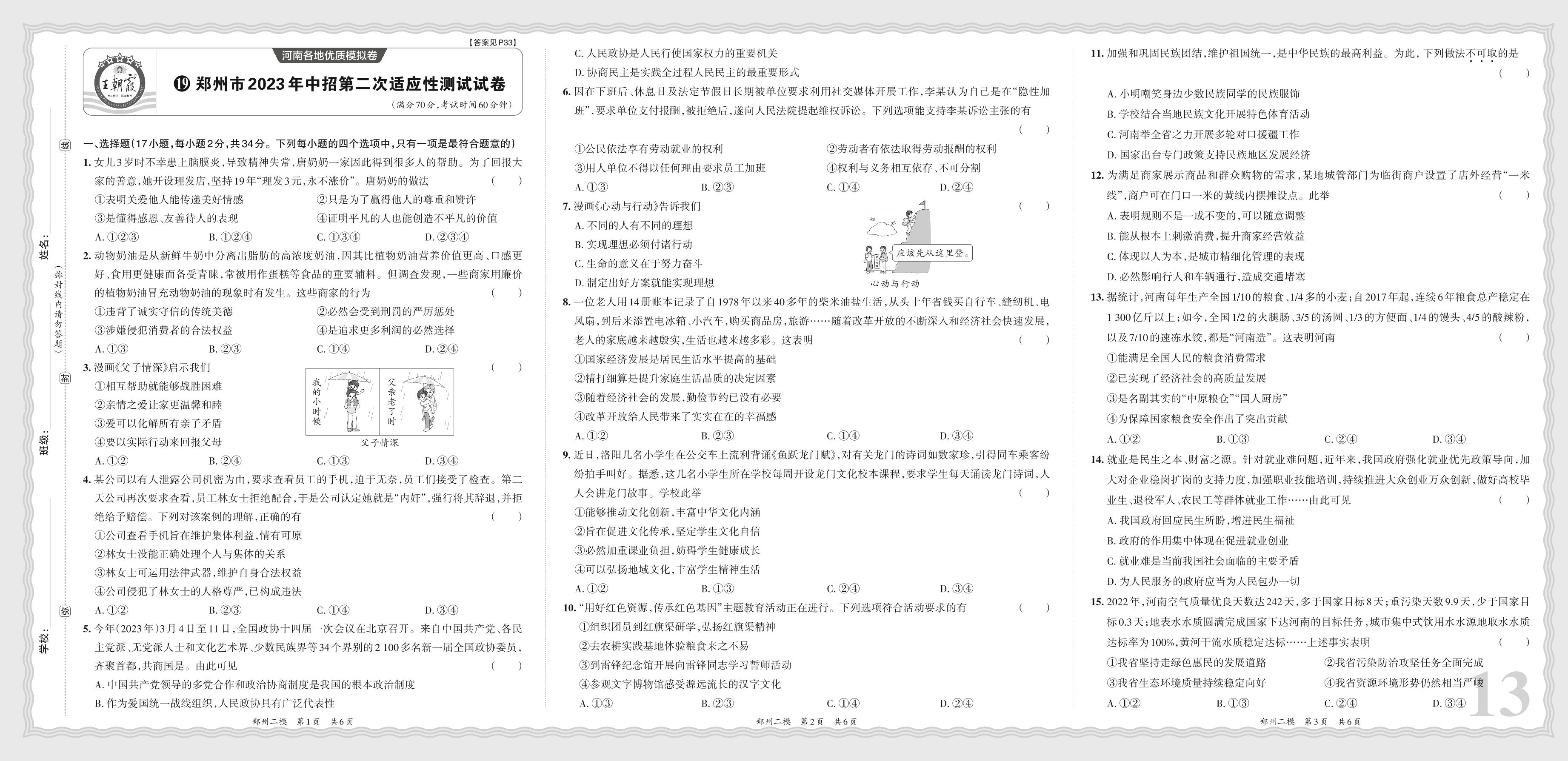 郑州市2023年中招第二次适应性测试试卷·道德与法治【19】