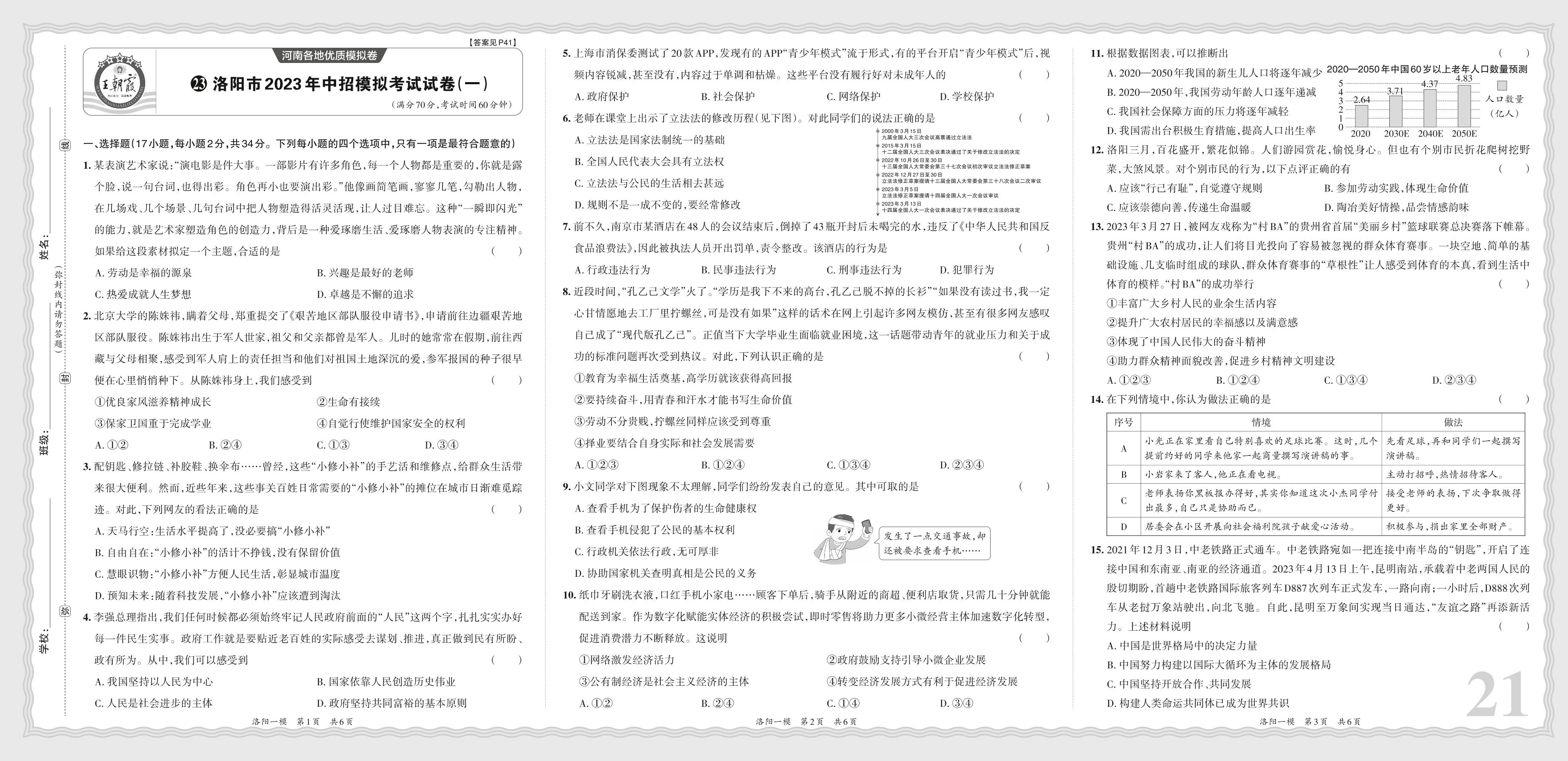洛阳市2023年中招模拟考试试卷(一)·道德与法治【23】