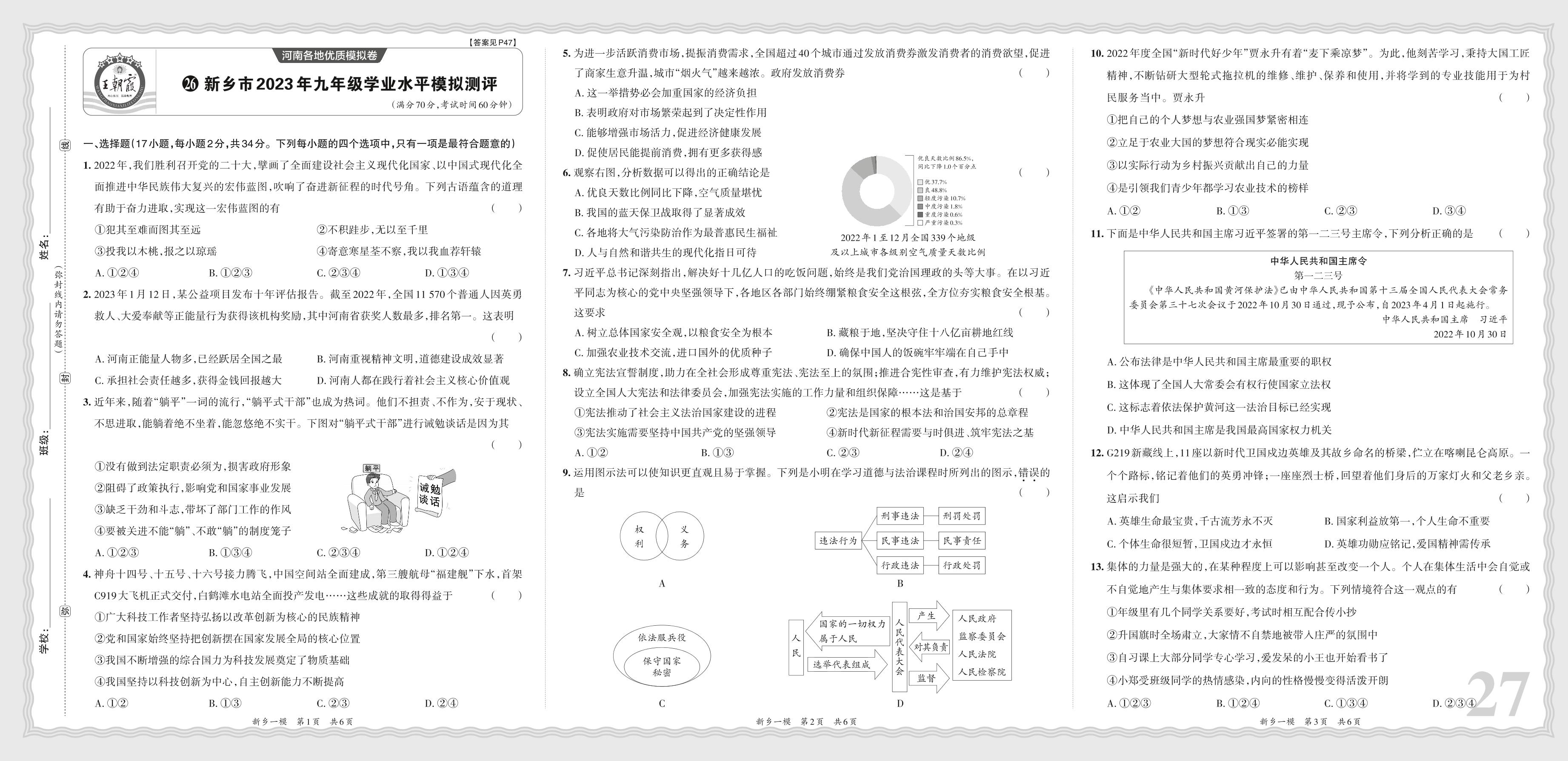 新乡市2023年九年级学业水平模拟测评·道德与法治【26】