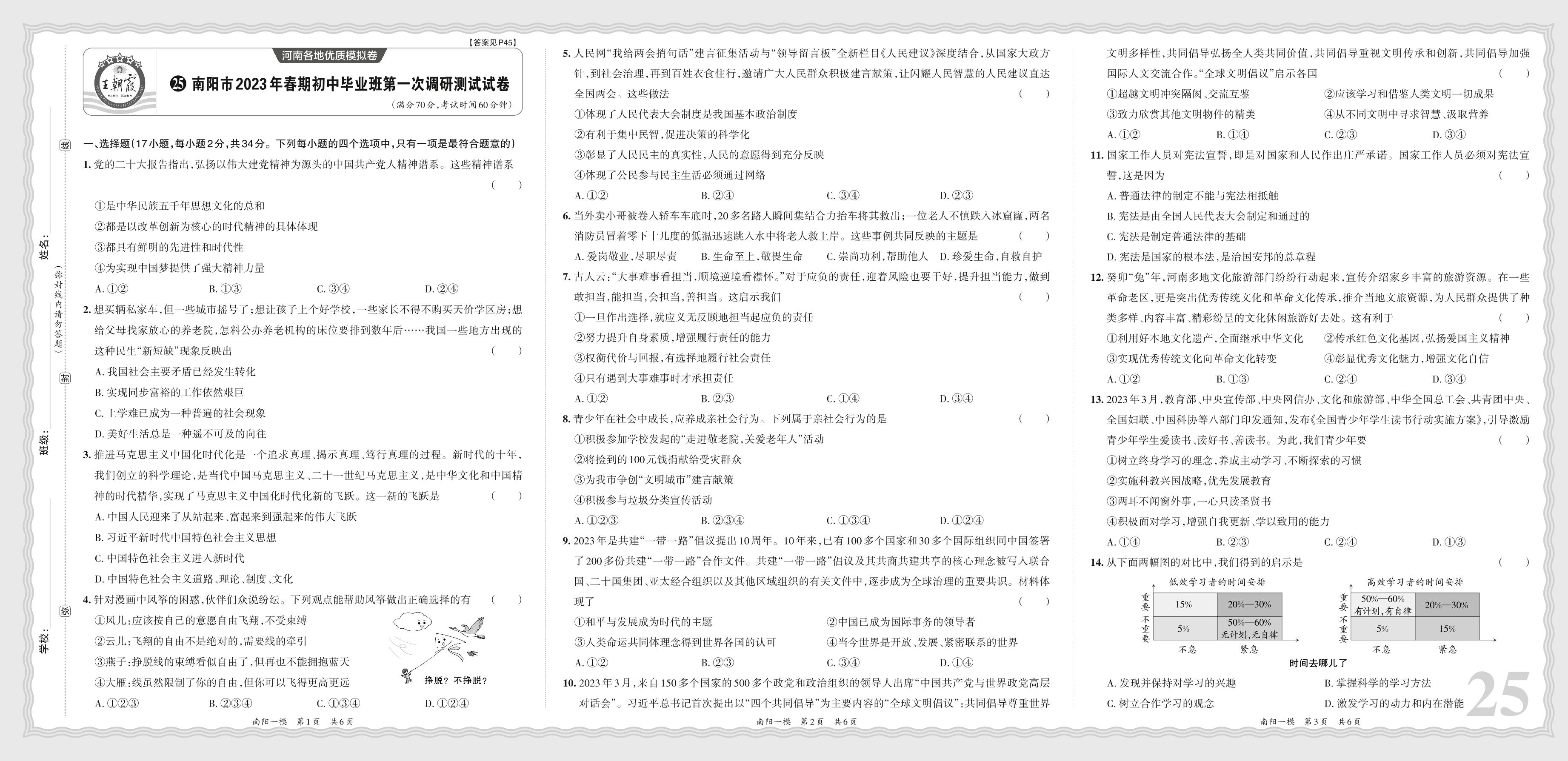 南阳市2023年春期初中毕业班第一次调研测试试卷·道德与法治【25】