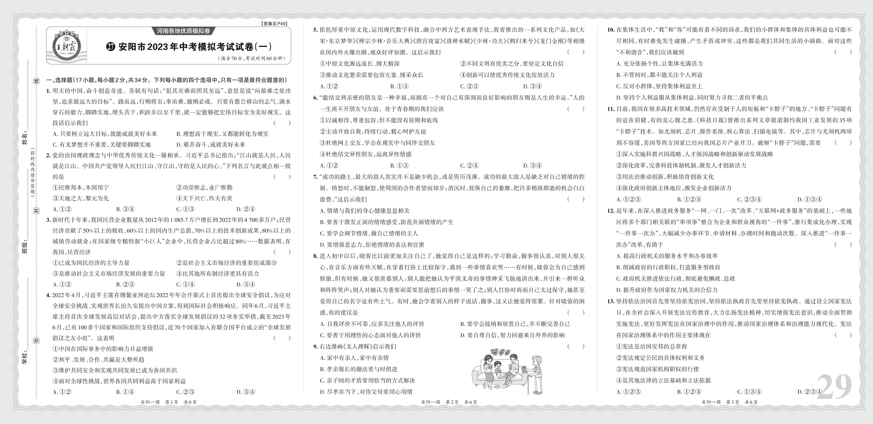 安阳市2023年中考模拟考试试卷(一)·道德与法治【27】
