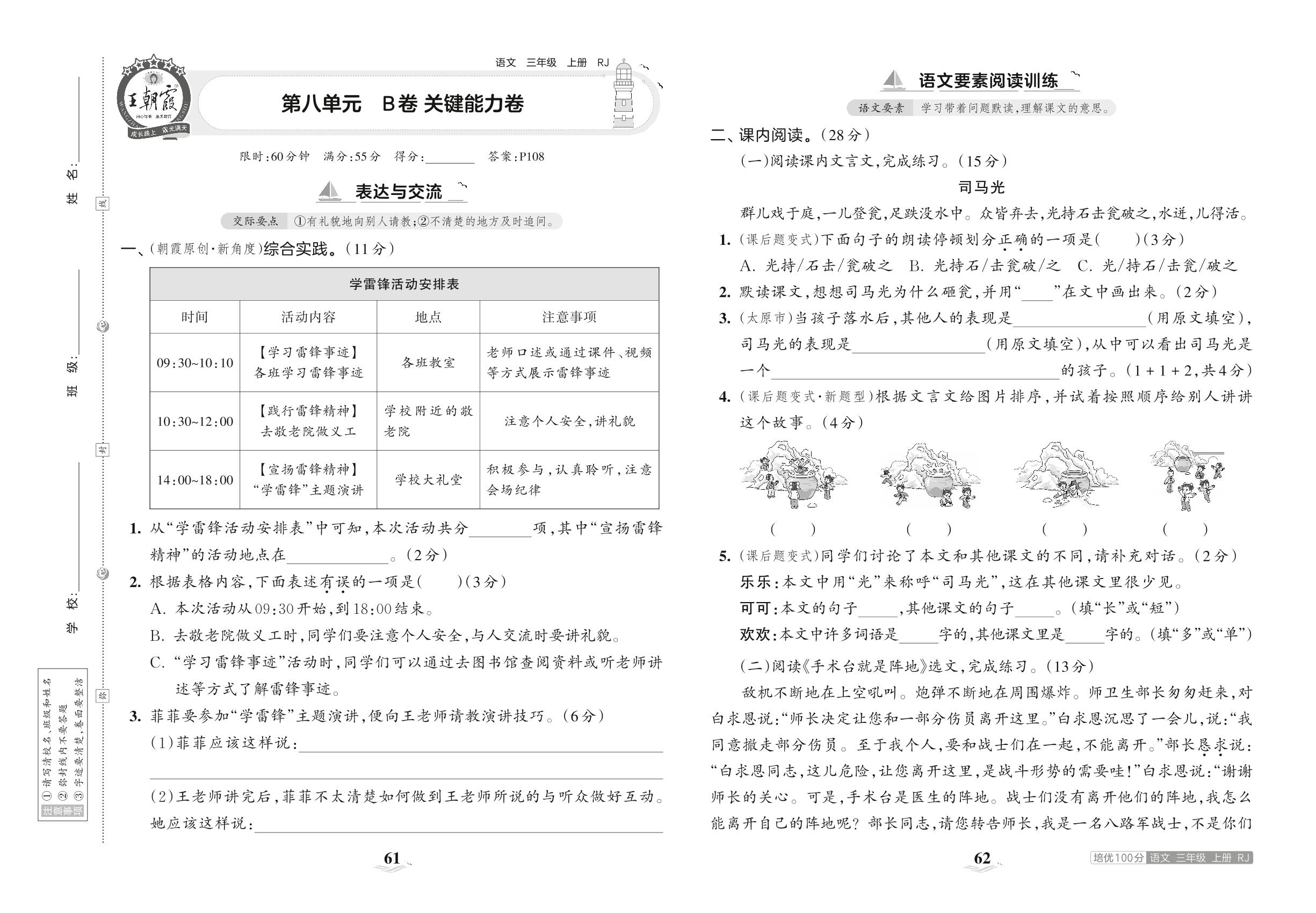 2023上册三年级语文人教版 第八单元 B卷 关键能力卷