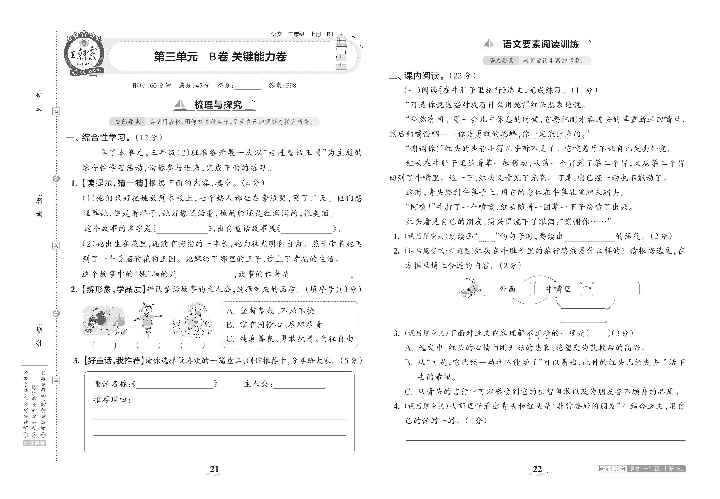 2023上册三年级语文人教版 第三单元 B卷 关键能力卷