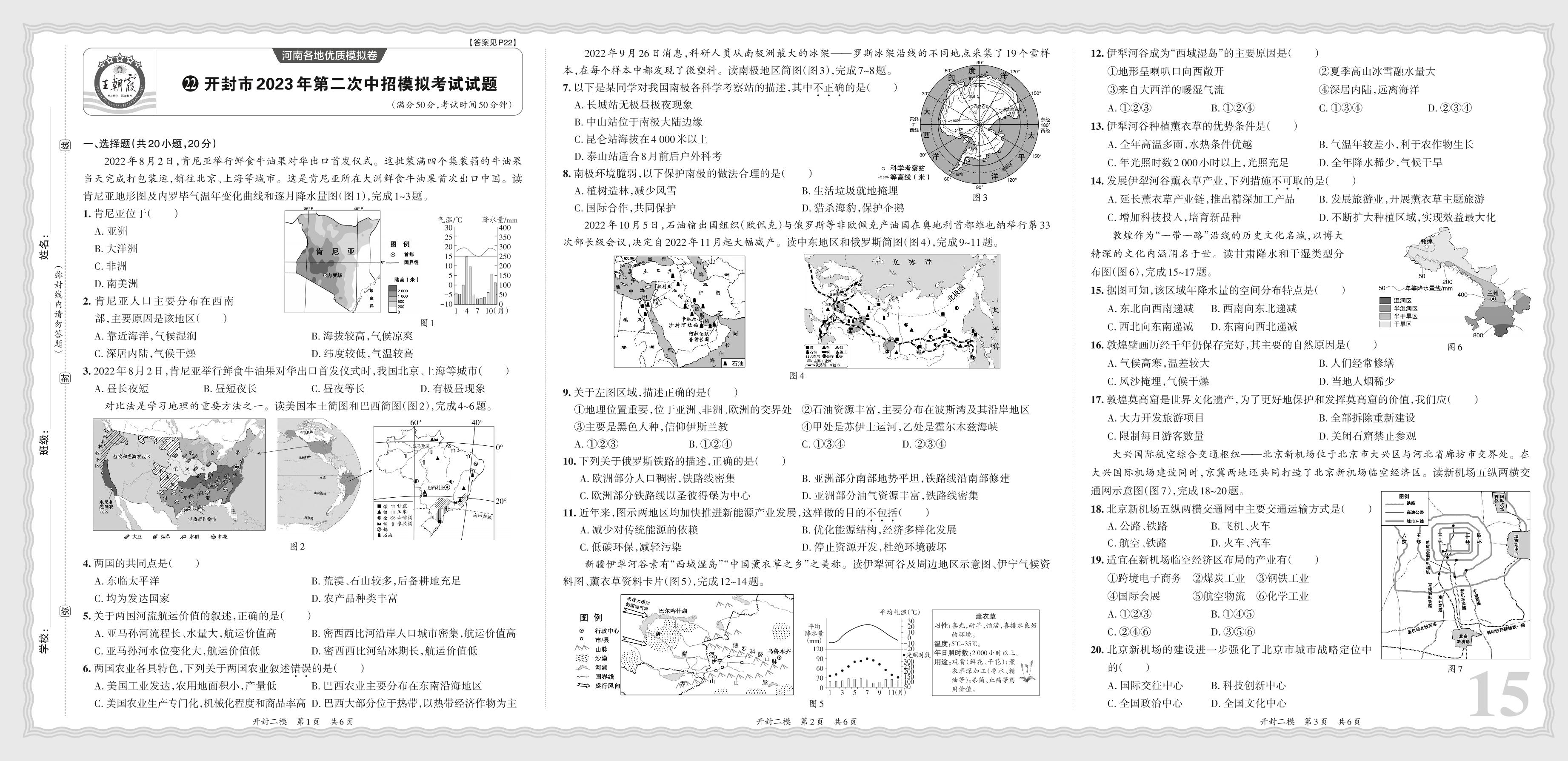 开封市2023年第二次中招模拟考试试题·地理【22】
