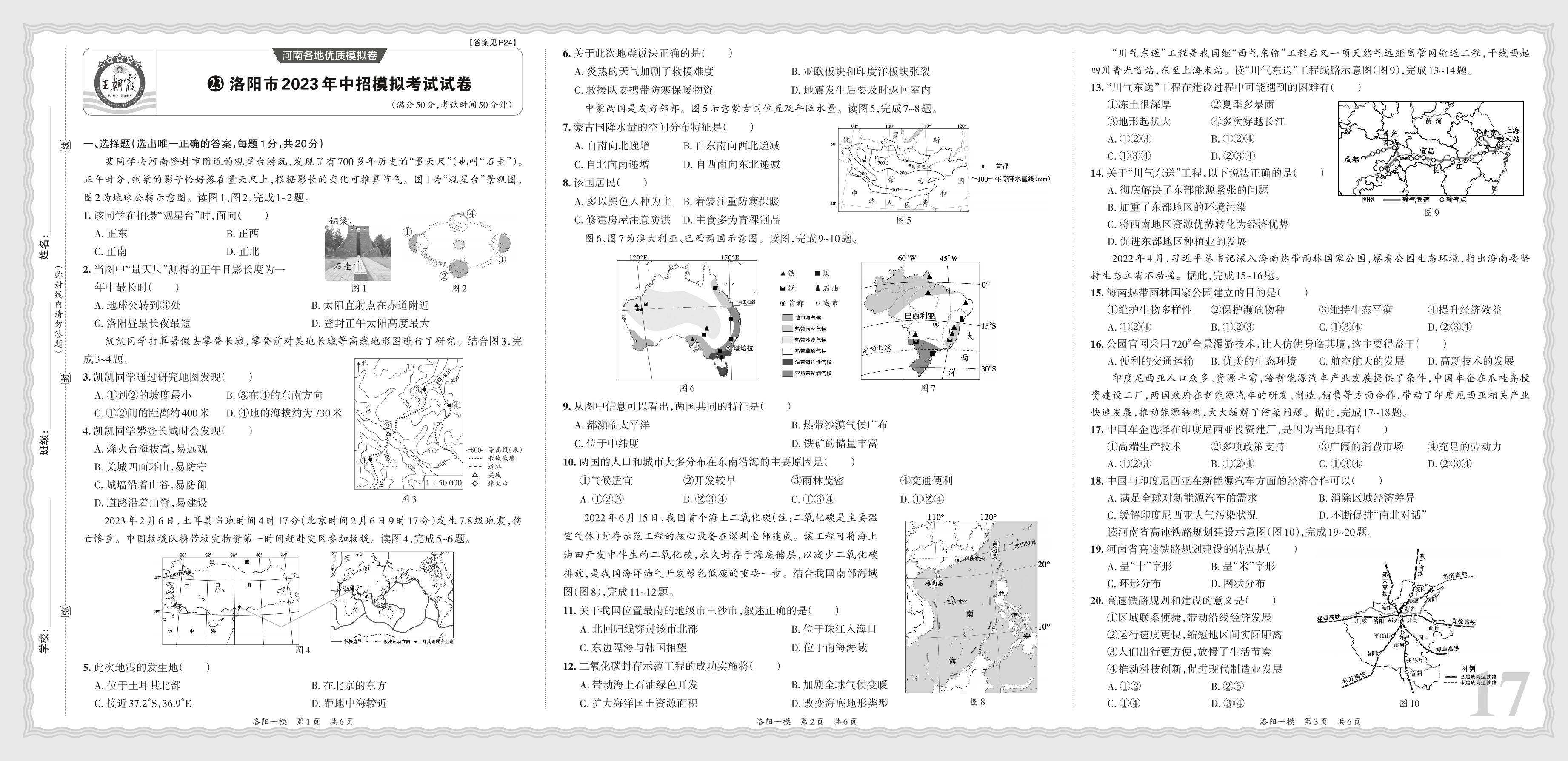 洛阳市2023年中招模拟考试试卷·地理【23】