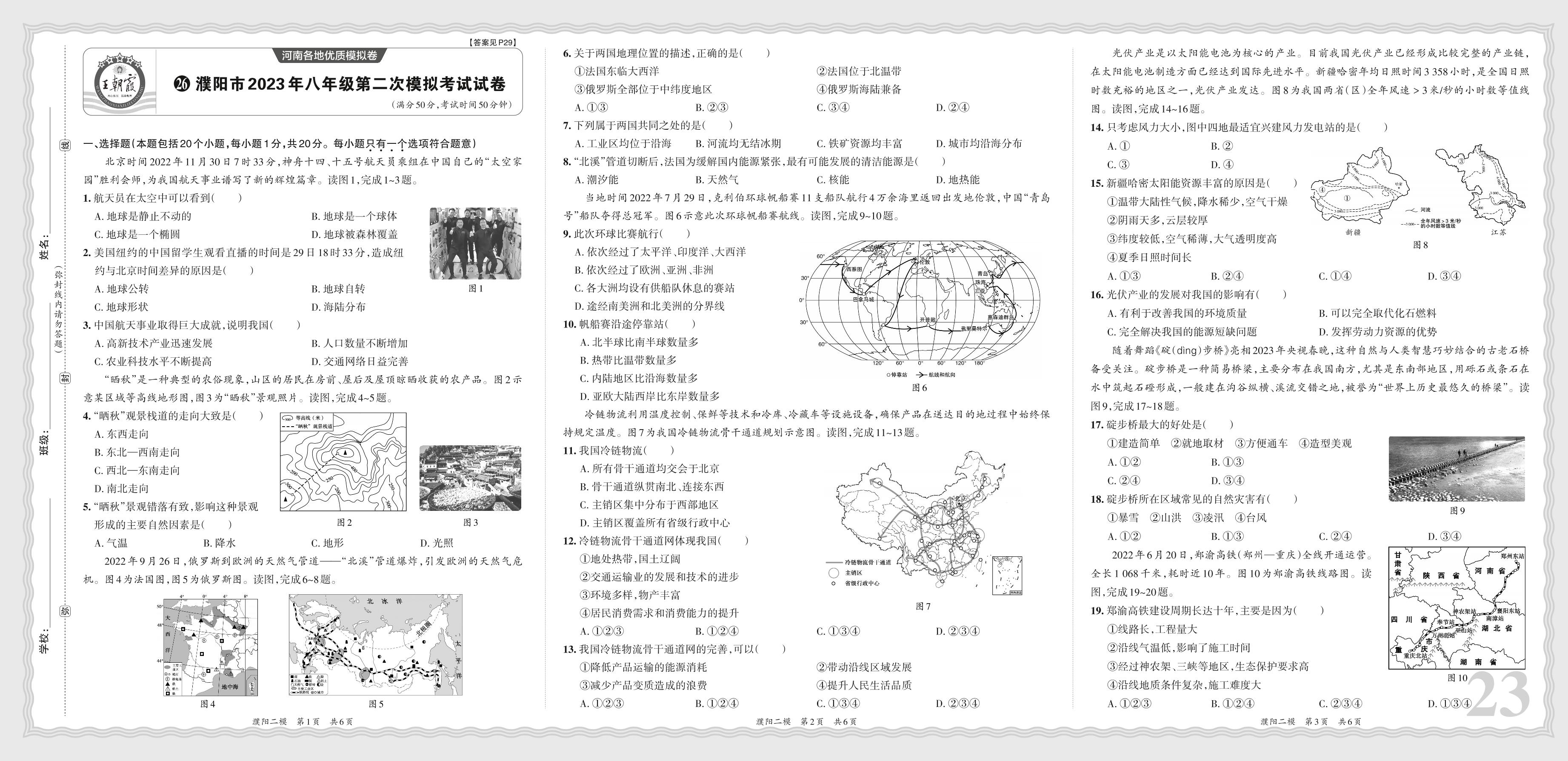 濮阳市2023年八年级第二次模拟考试试卷·地理【26】