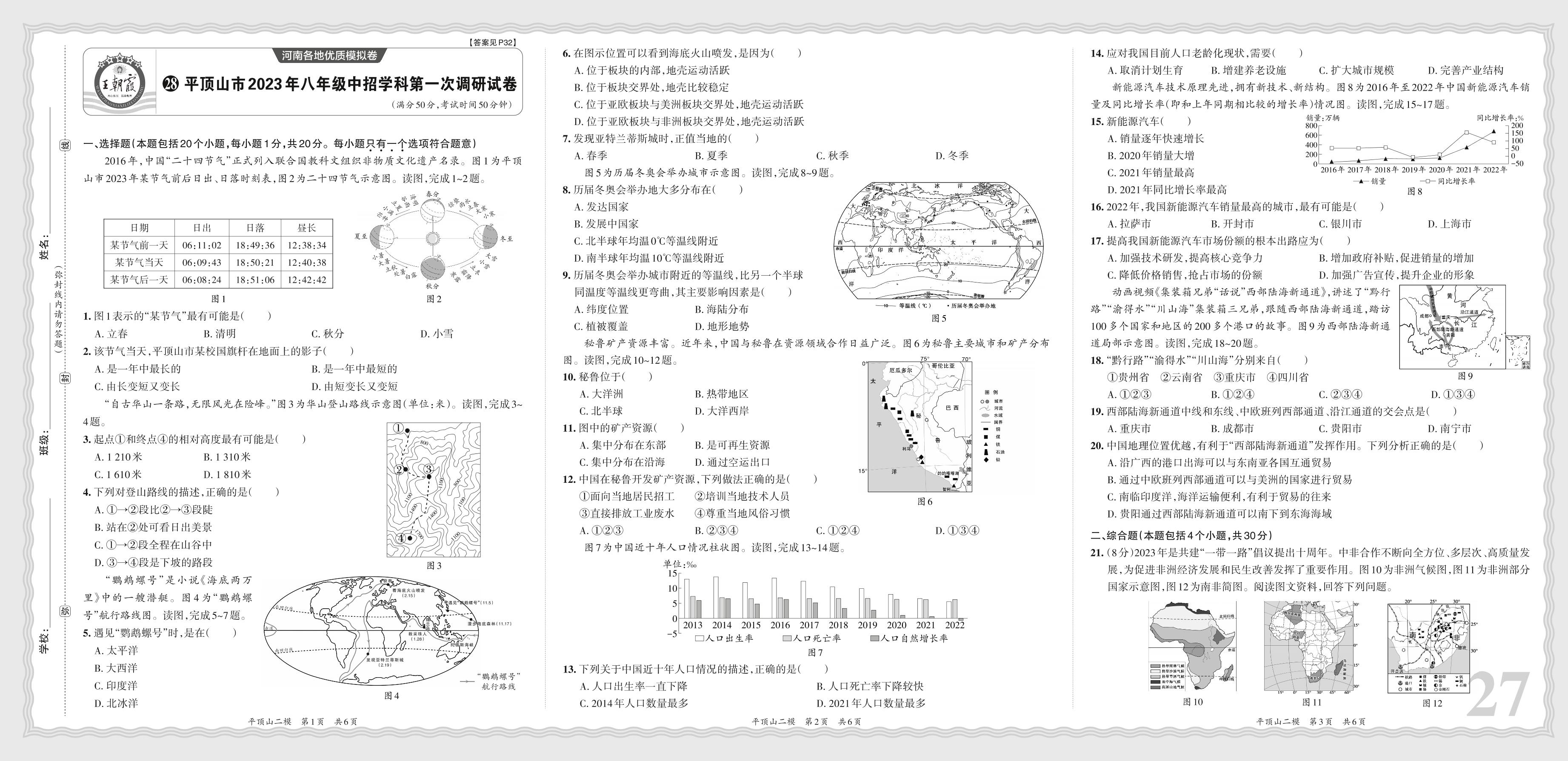 平顶山市2023年八年级中招学科第一次调研试卷·地理【28】