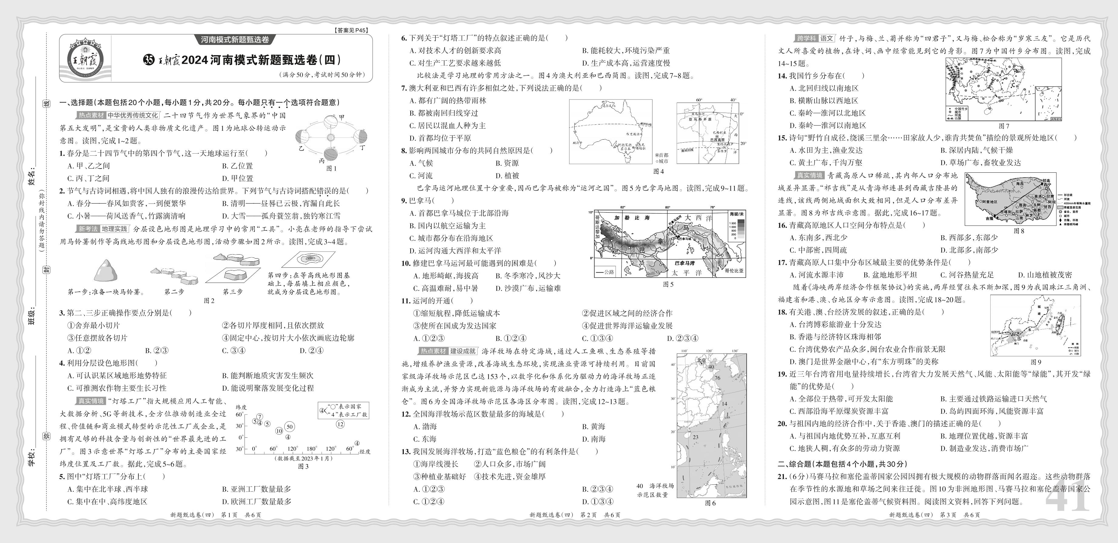 王朝霞2024河南模式新题甄选卷(四)·中考地理【35】