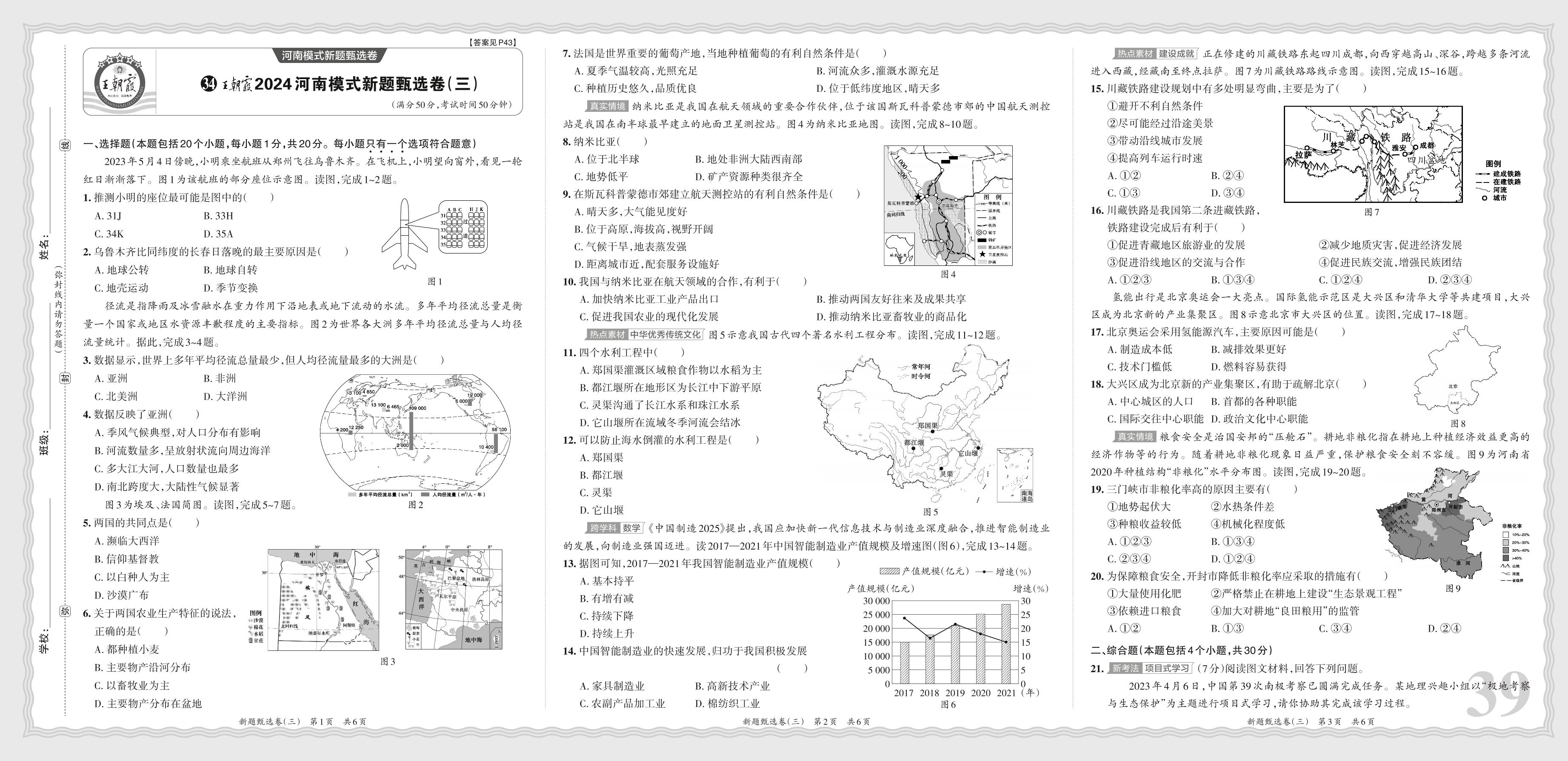 王朝霞2024河南模式新题甄选卷(三)·中考地理【34】