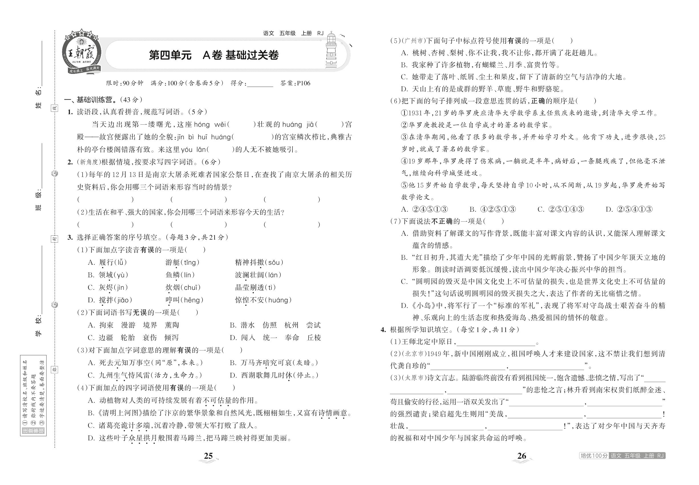 五年级语文人教版上册单元卷