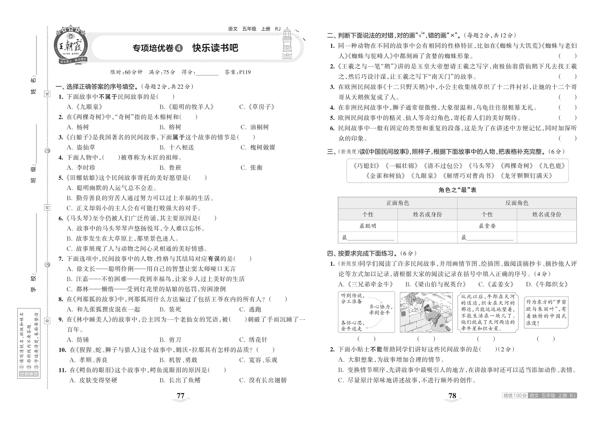 2023上册五年级语文人教版 专项培优卷4 快乐读书吧