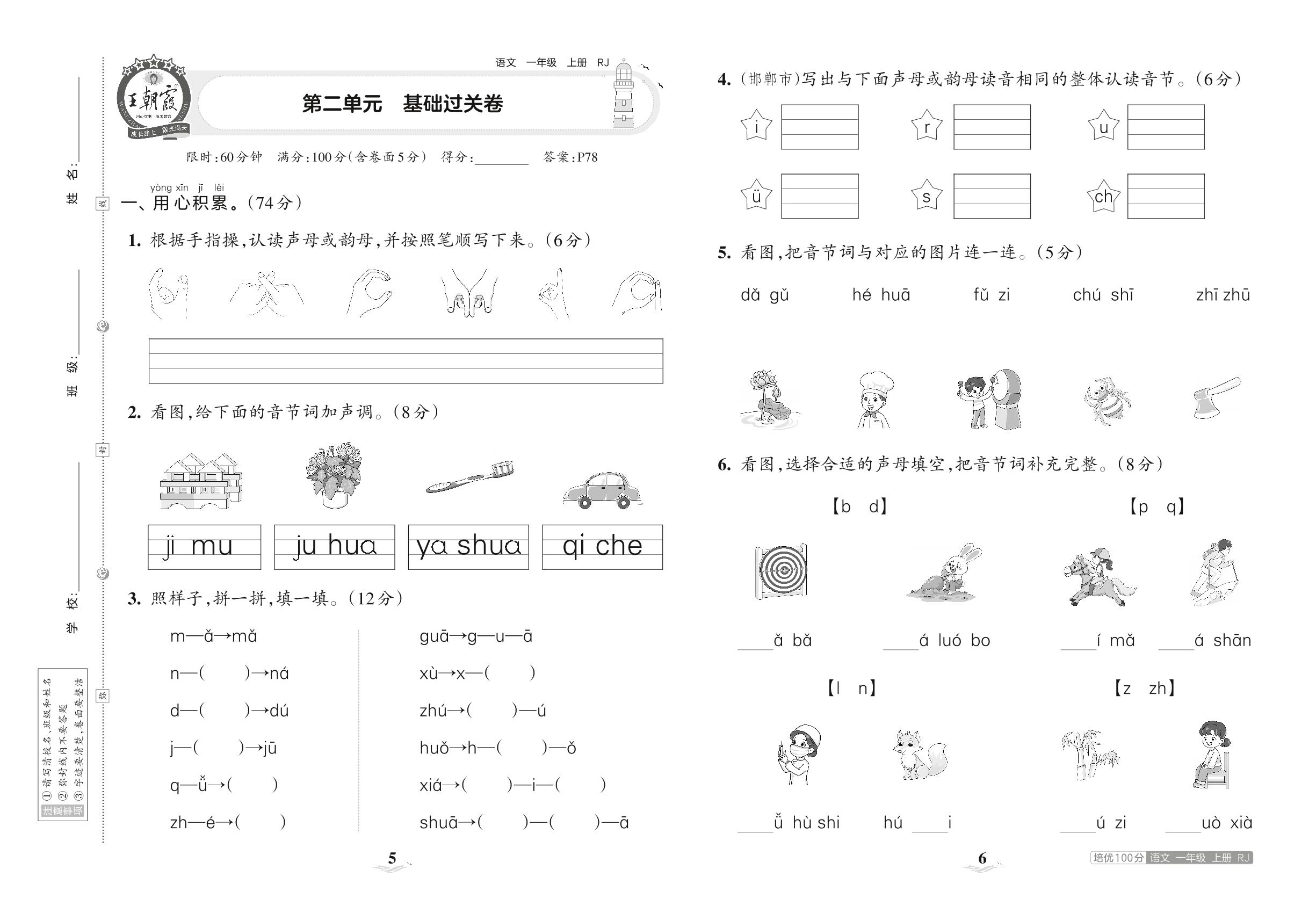 2023上册一年级语文人教版 第二单元 基础过关卷