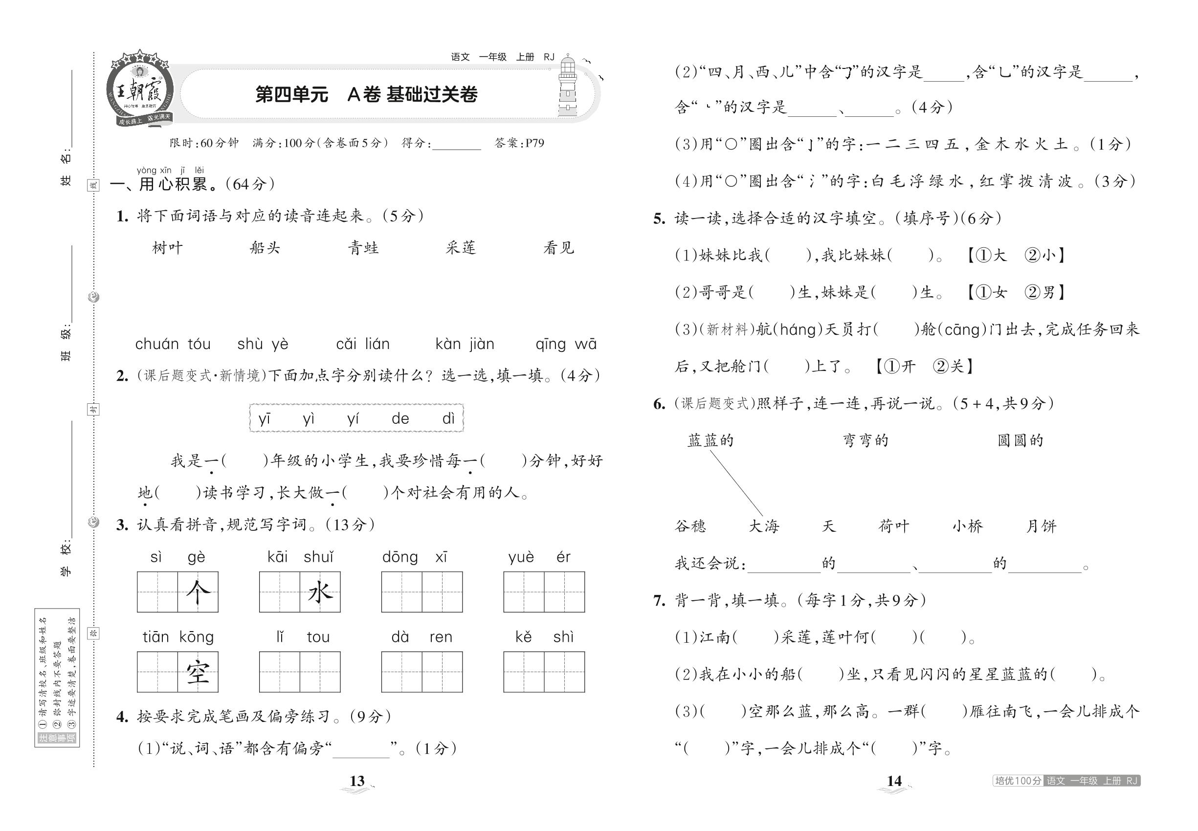 一年级语文人教版上册单元卷
