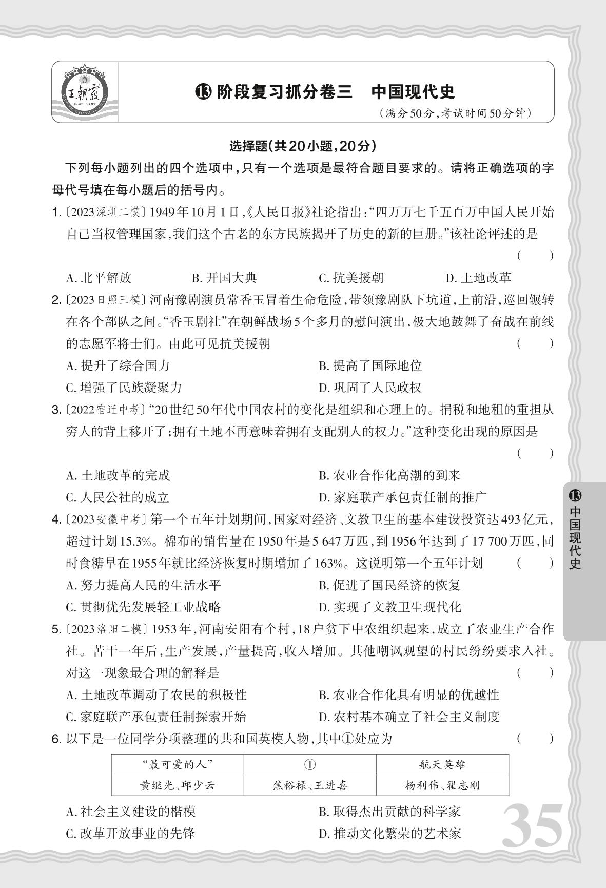 河南中考阶段复习抓分卷三 中国现代史·历史【13】
