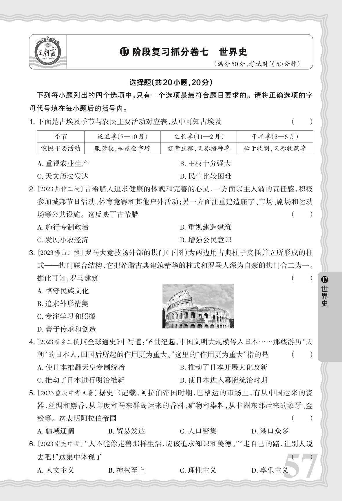 河南中考阶段复习抓分卷七 世界史·历史【17】