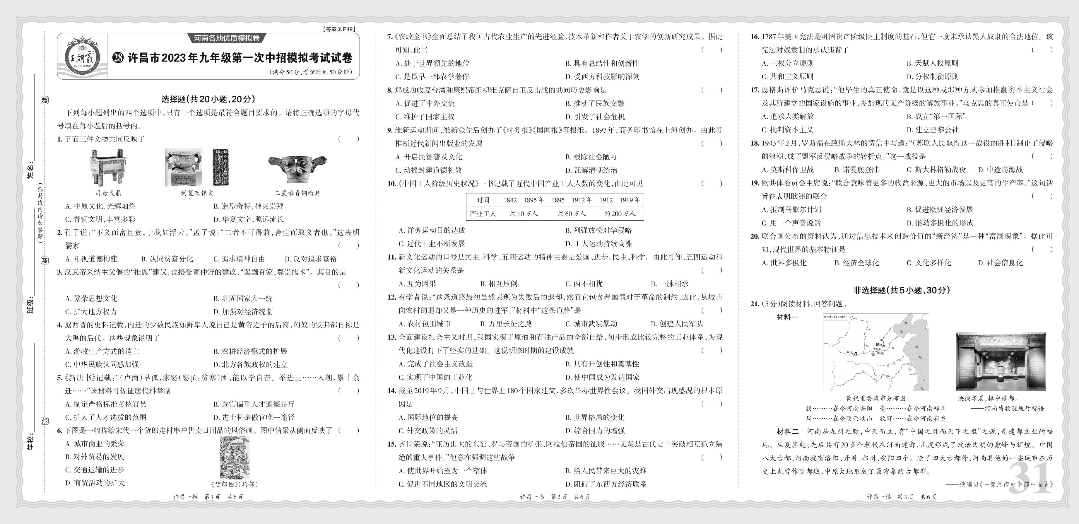 许昌市2023年九年级第一次中招模拟考试试卷·历史【28】