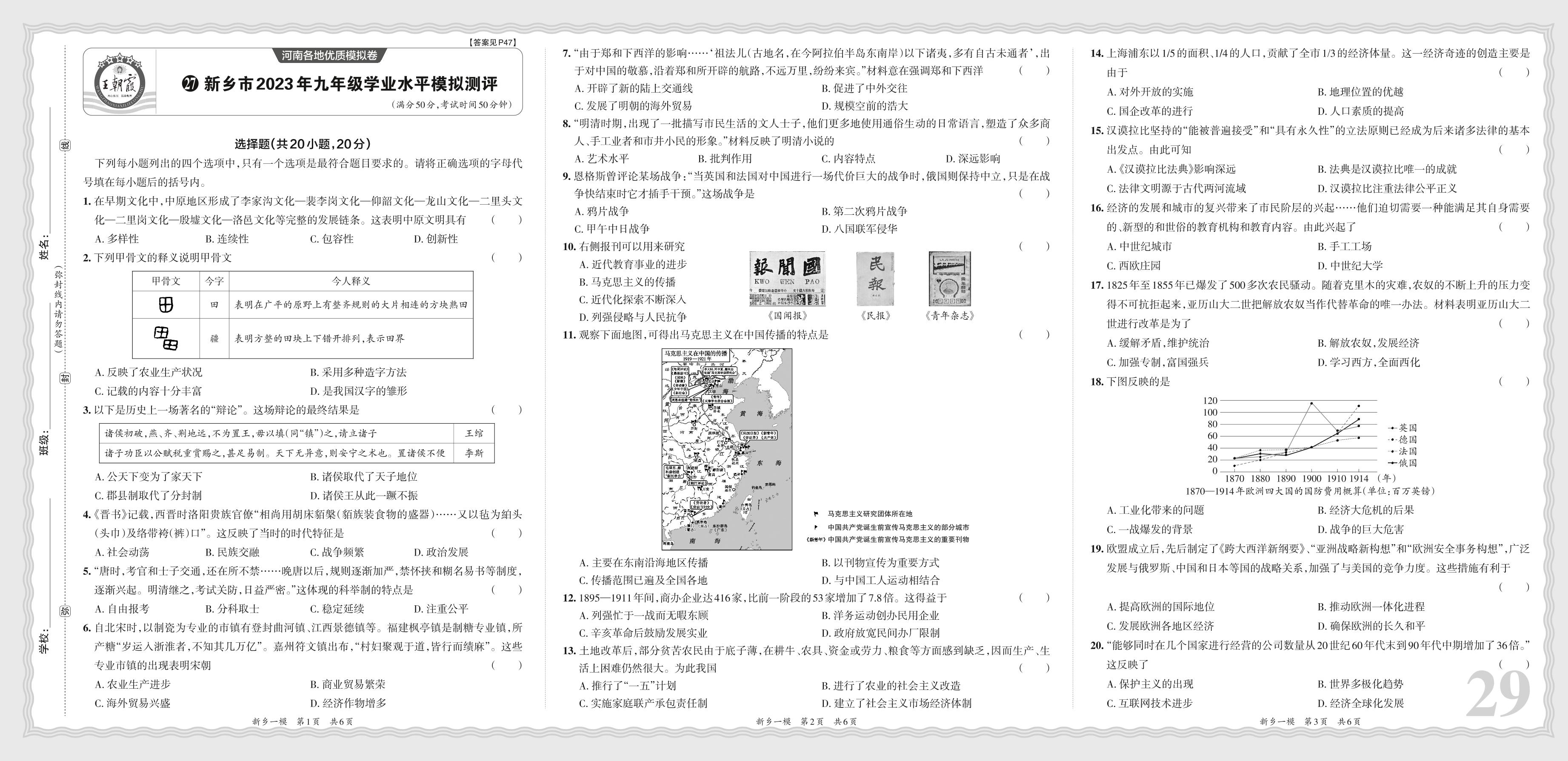 新乡市2023年九年级学业水平模拟测评·历史【27】