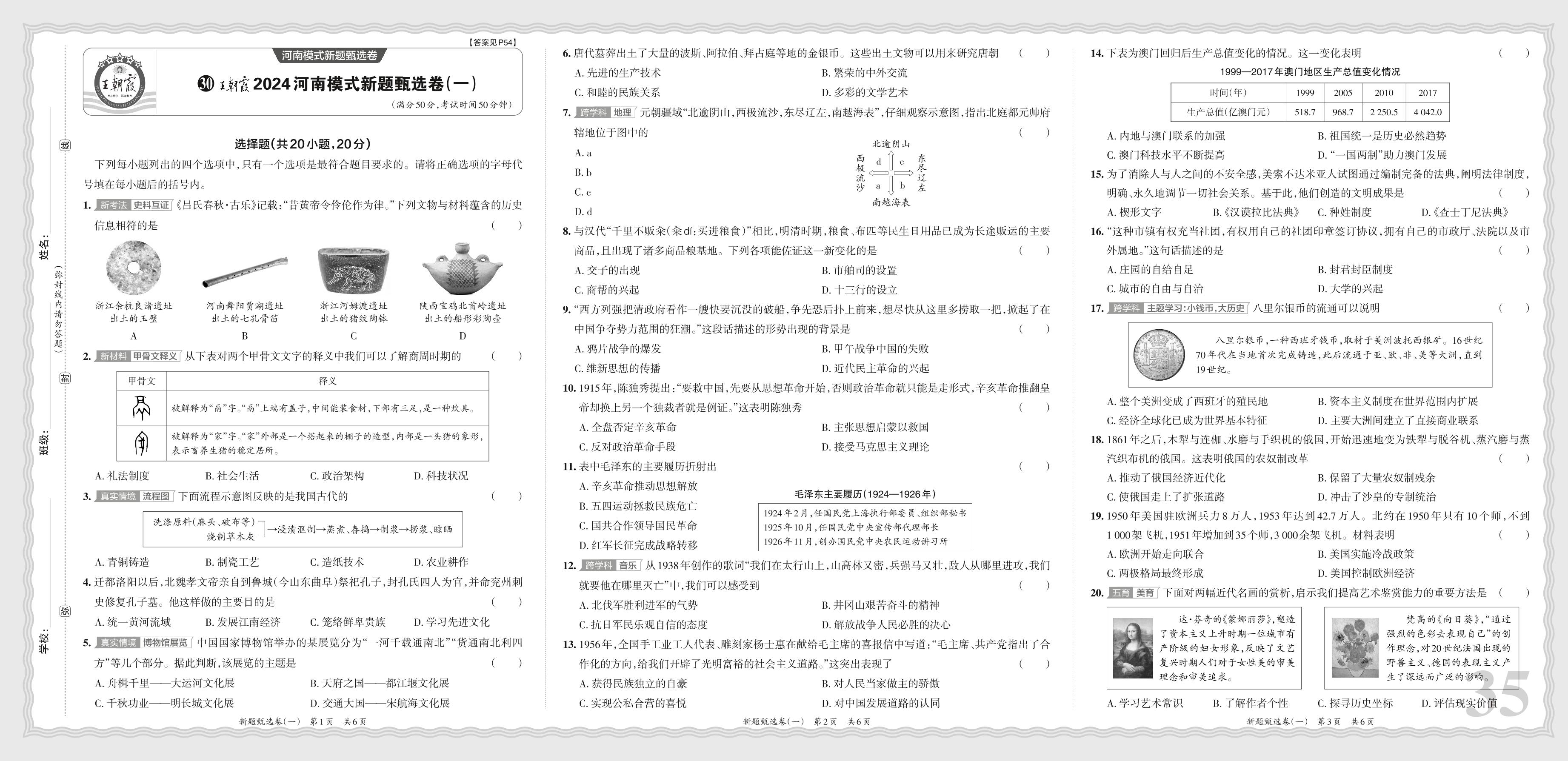 王朝霞2024河南模式新题甄选卷(一)·中考历史【30】