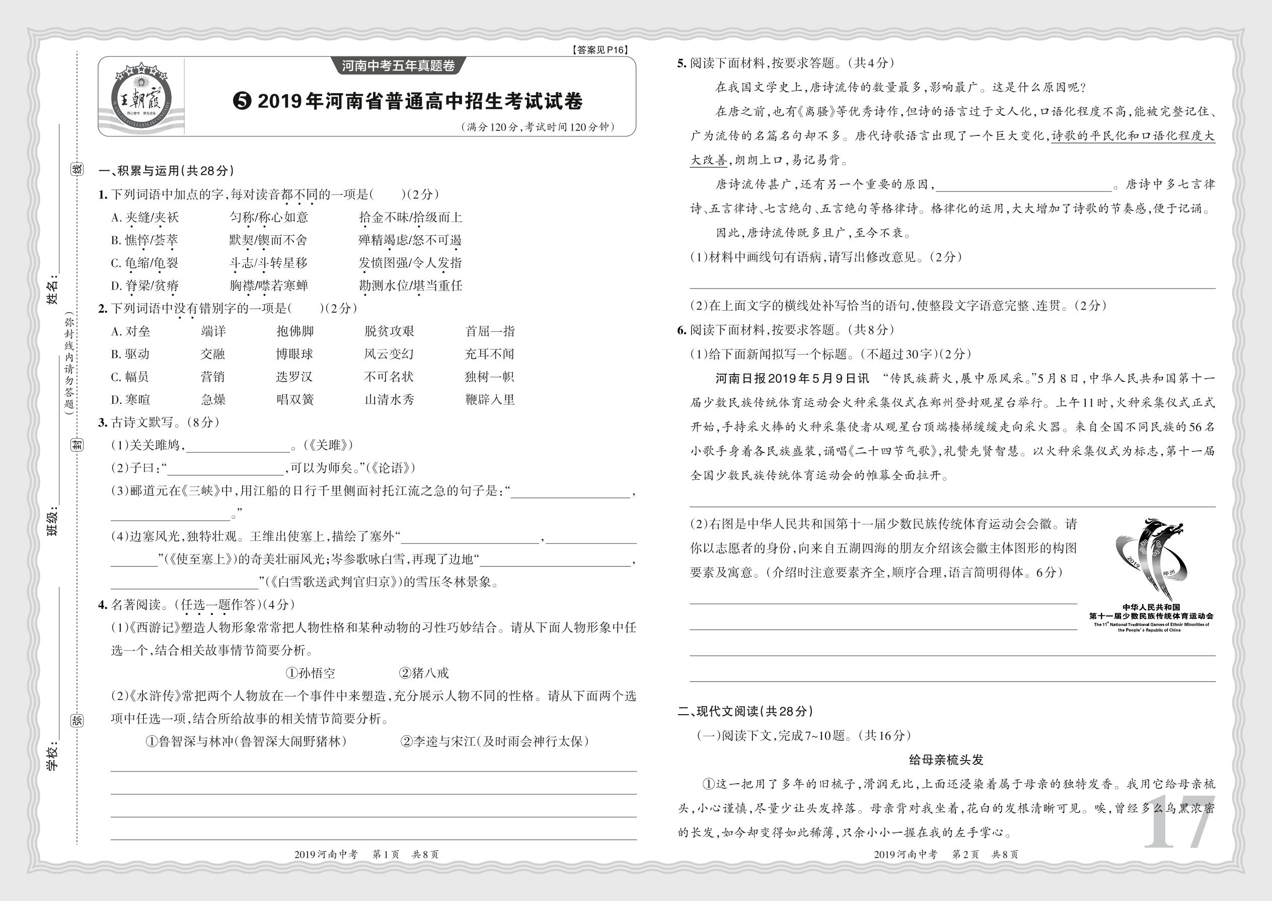 2019年河南省普通高中招生考试试卷·语文【5】