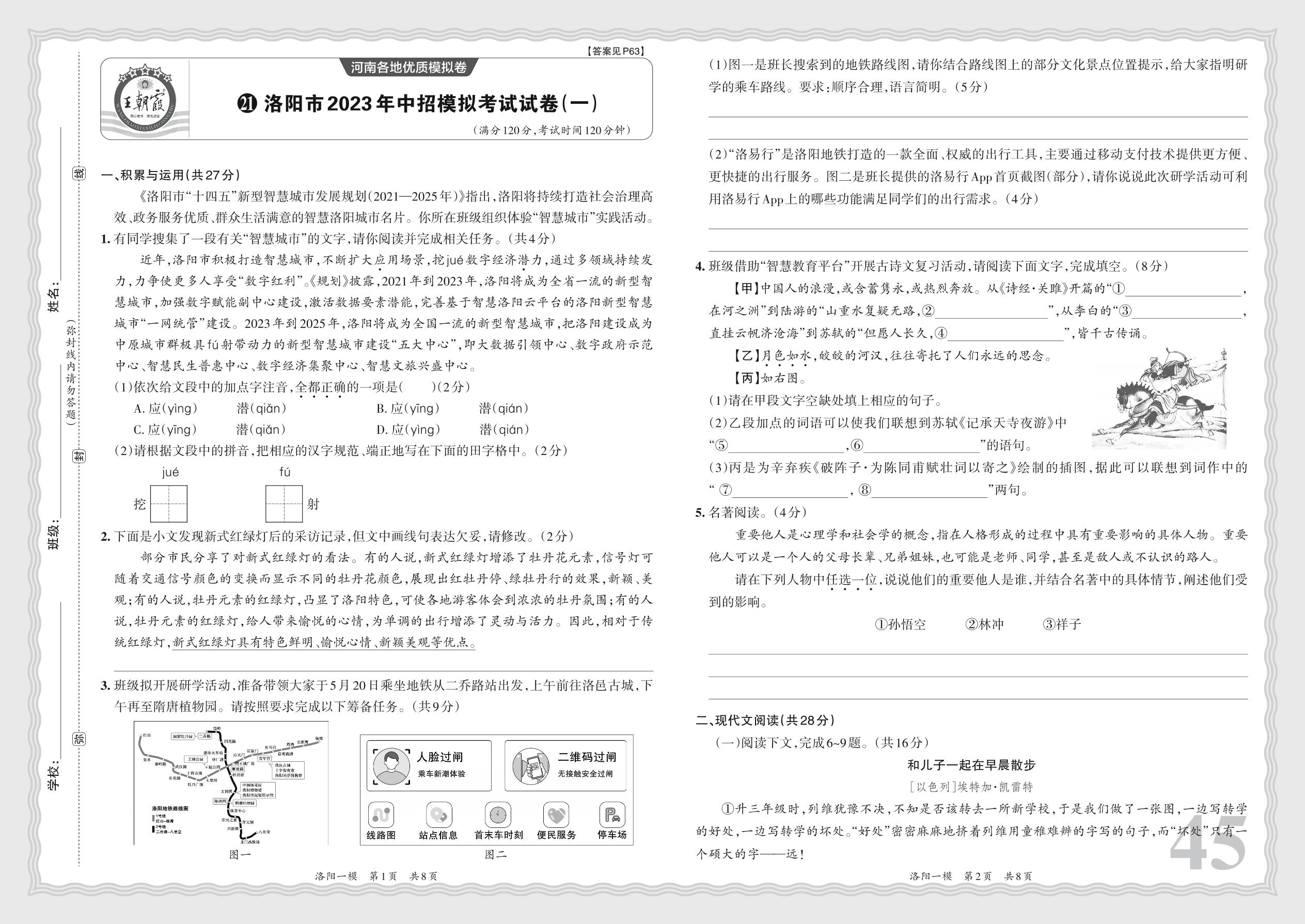 洛阳市2023年中招模拟考试试卷(一)·语文【21】