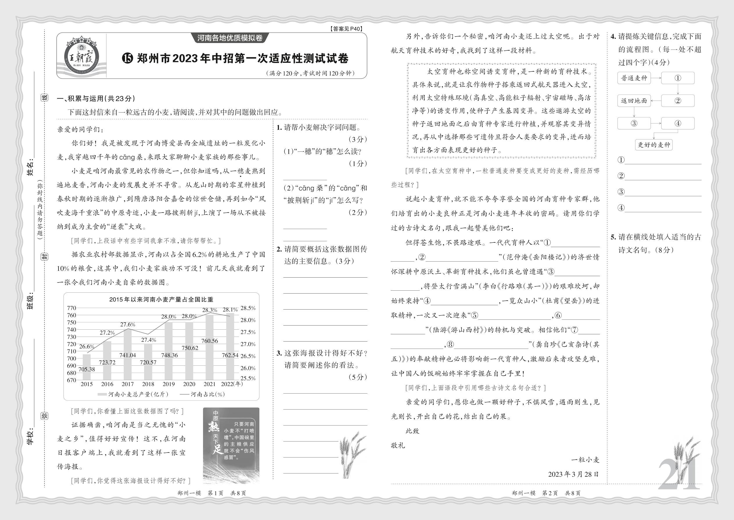 郑州市2023年中招第一次适应性测试试卷·语文【15】