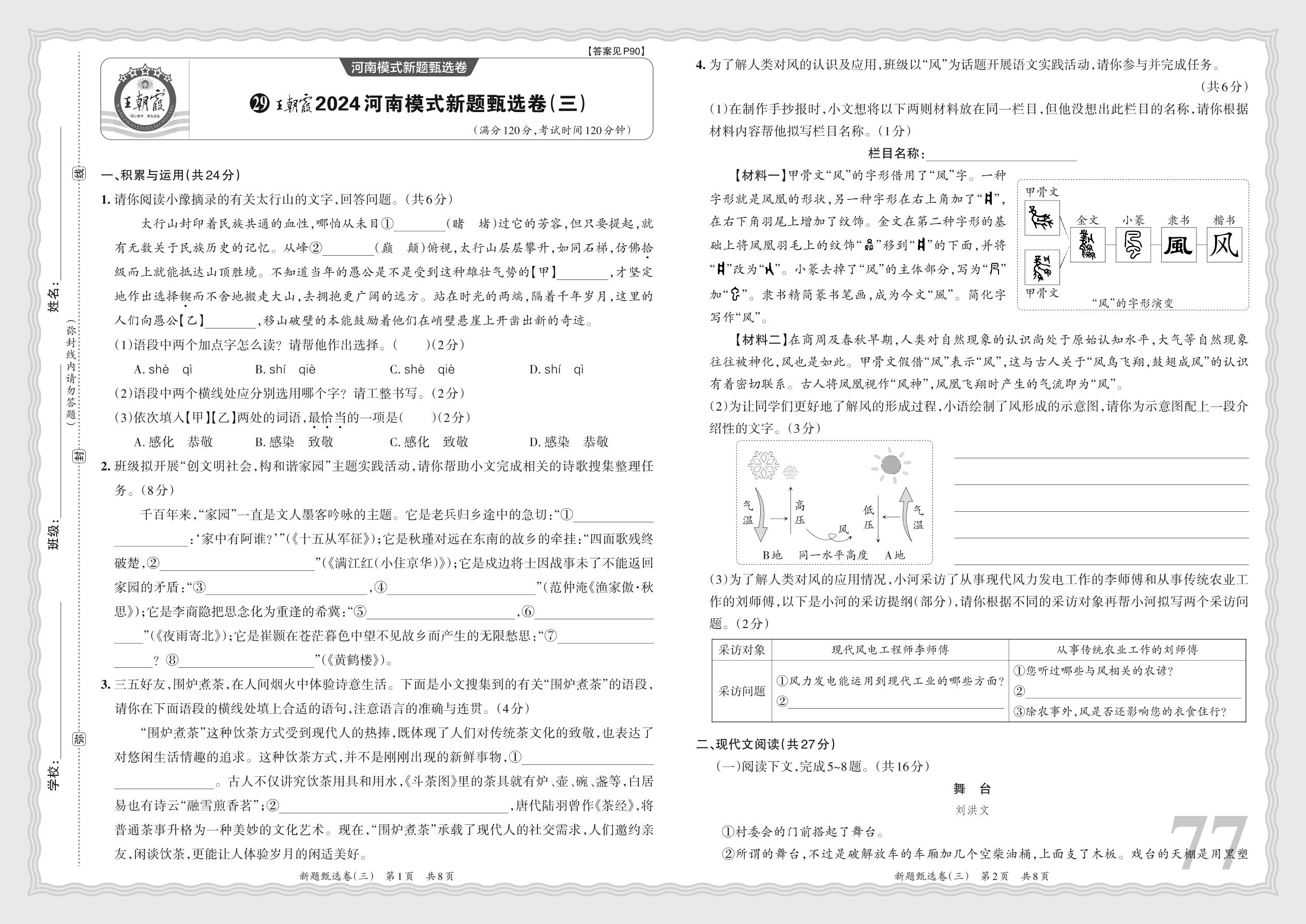 王朝霞2024河南模式新题甄选卷(三)·中考语文【29】