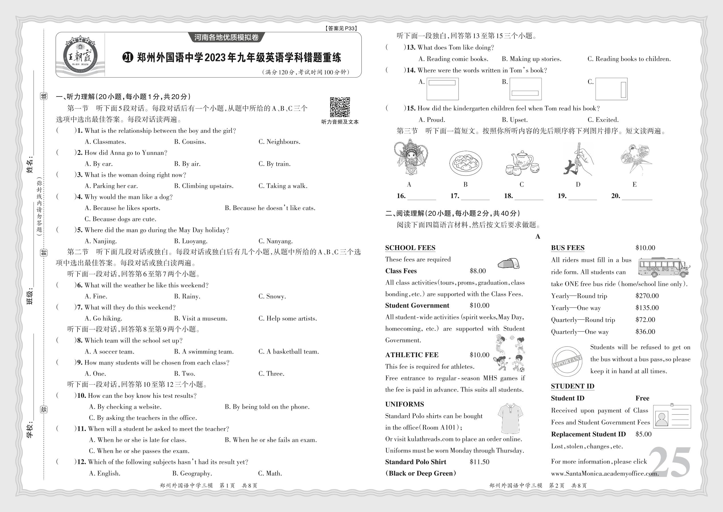 郑州外国语中学2023年九年级英语学科错题重练·英语【21】