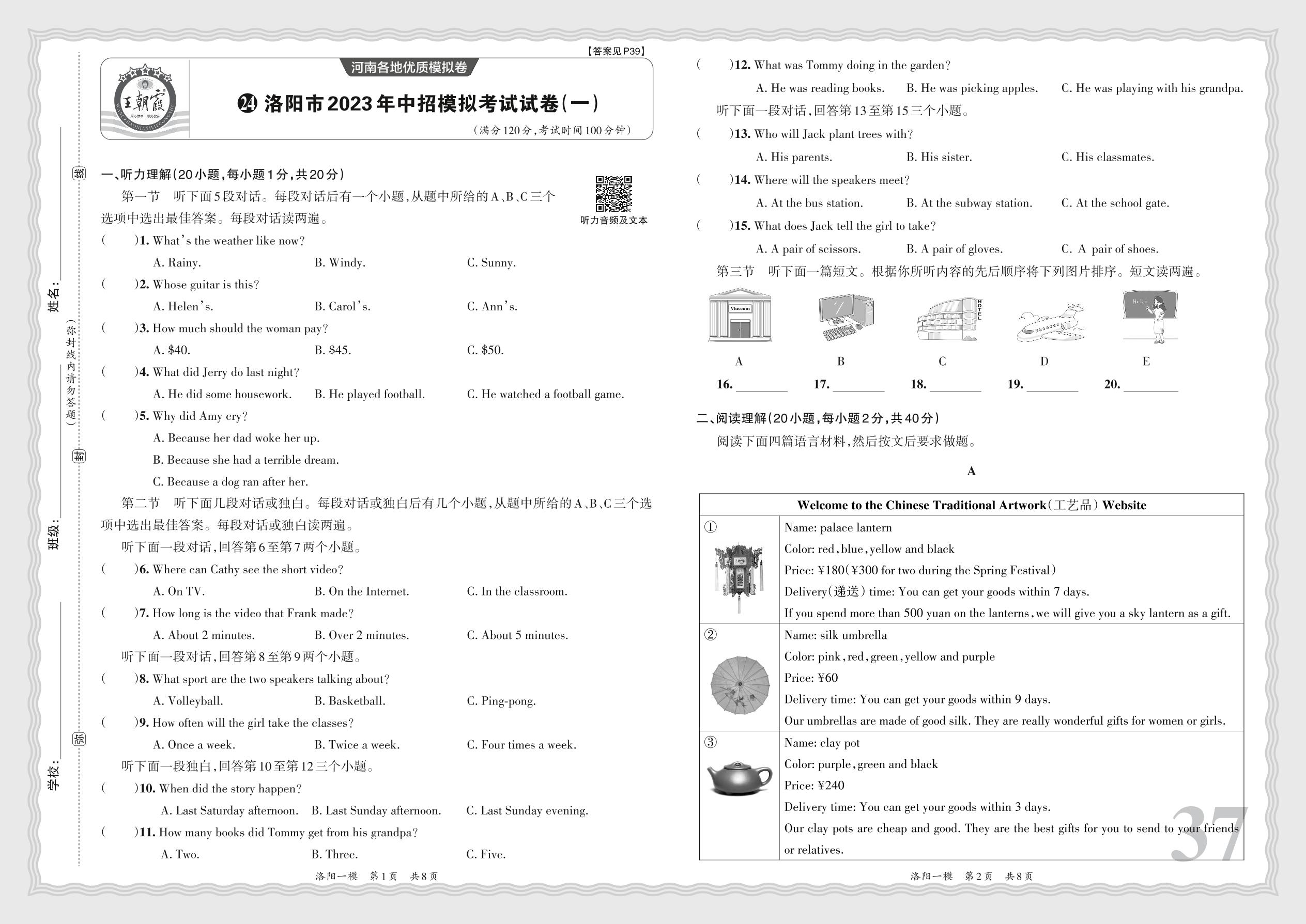 洛阳市2023年中招模拟考试试卷(一)·英语【24】