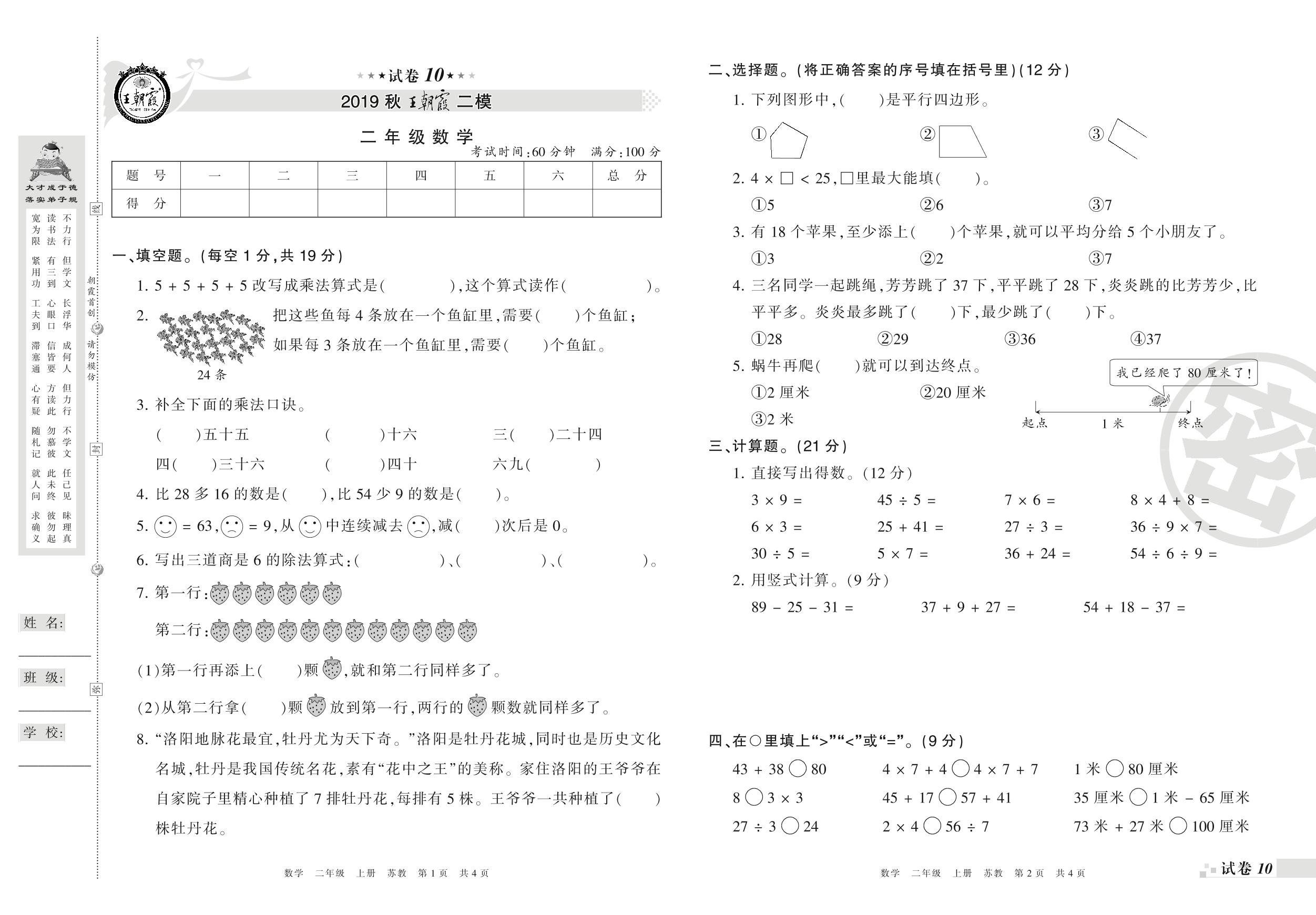 王朝霞期末模拟卷二年级上册数学(苏教版)_R21080392324【10】