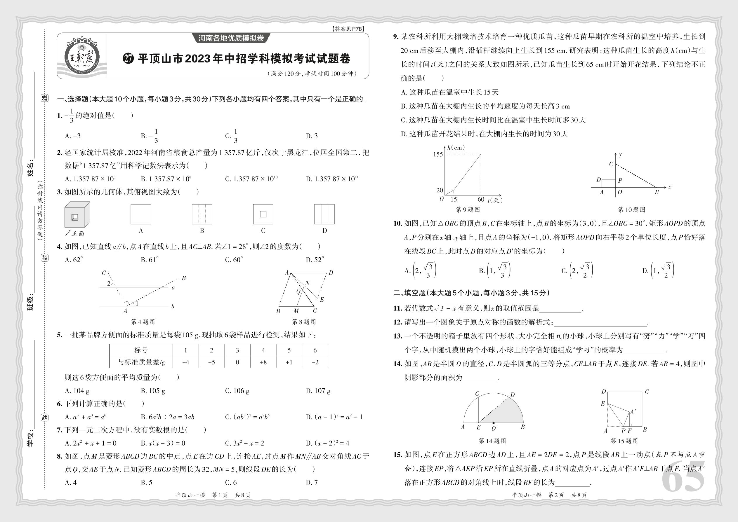 平顶山市2023年中招学科模拟考试试题卷·数学【27】