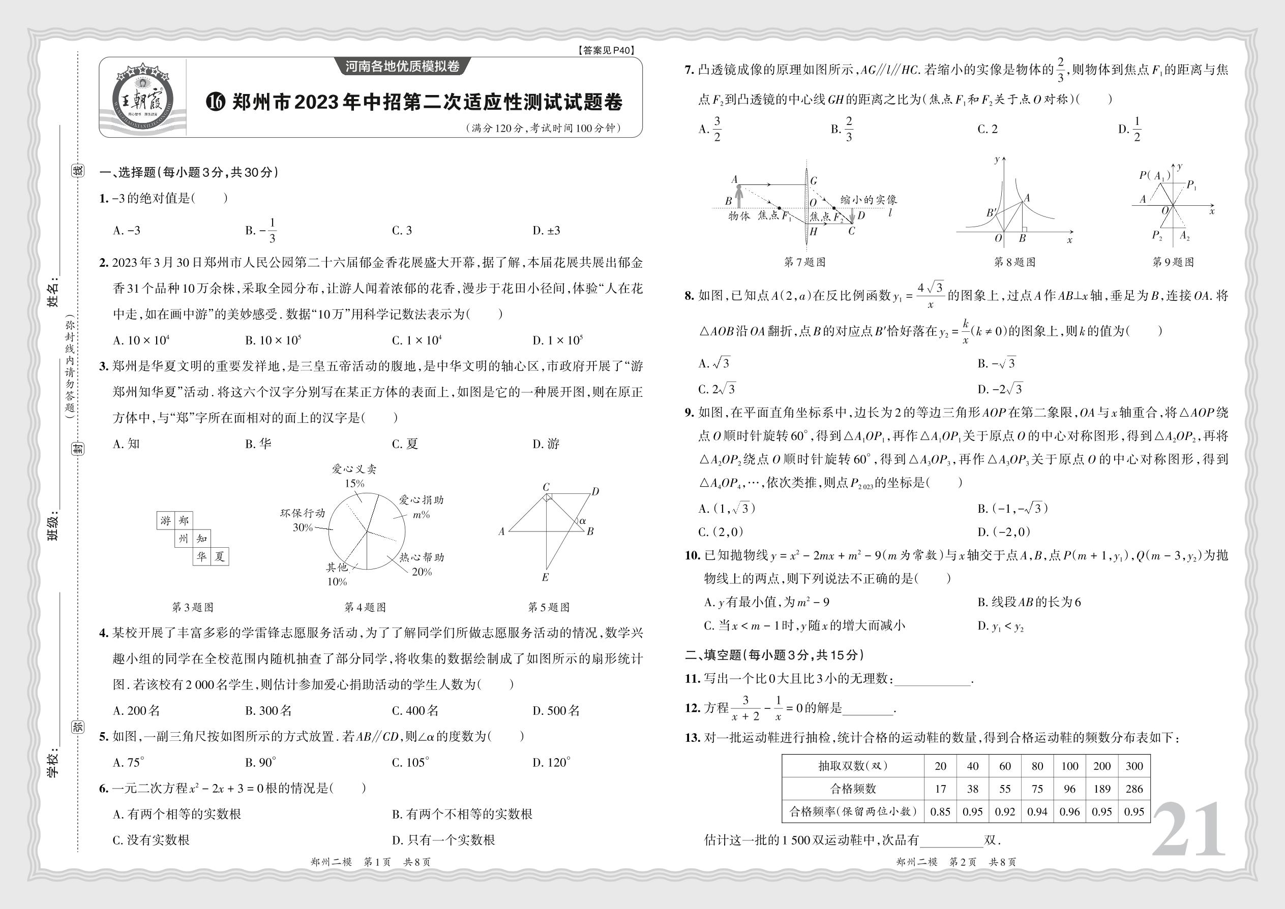 郑州市2023年中招第二次适应性测试试题卷·数学【16】