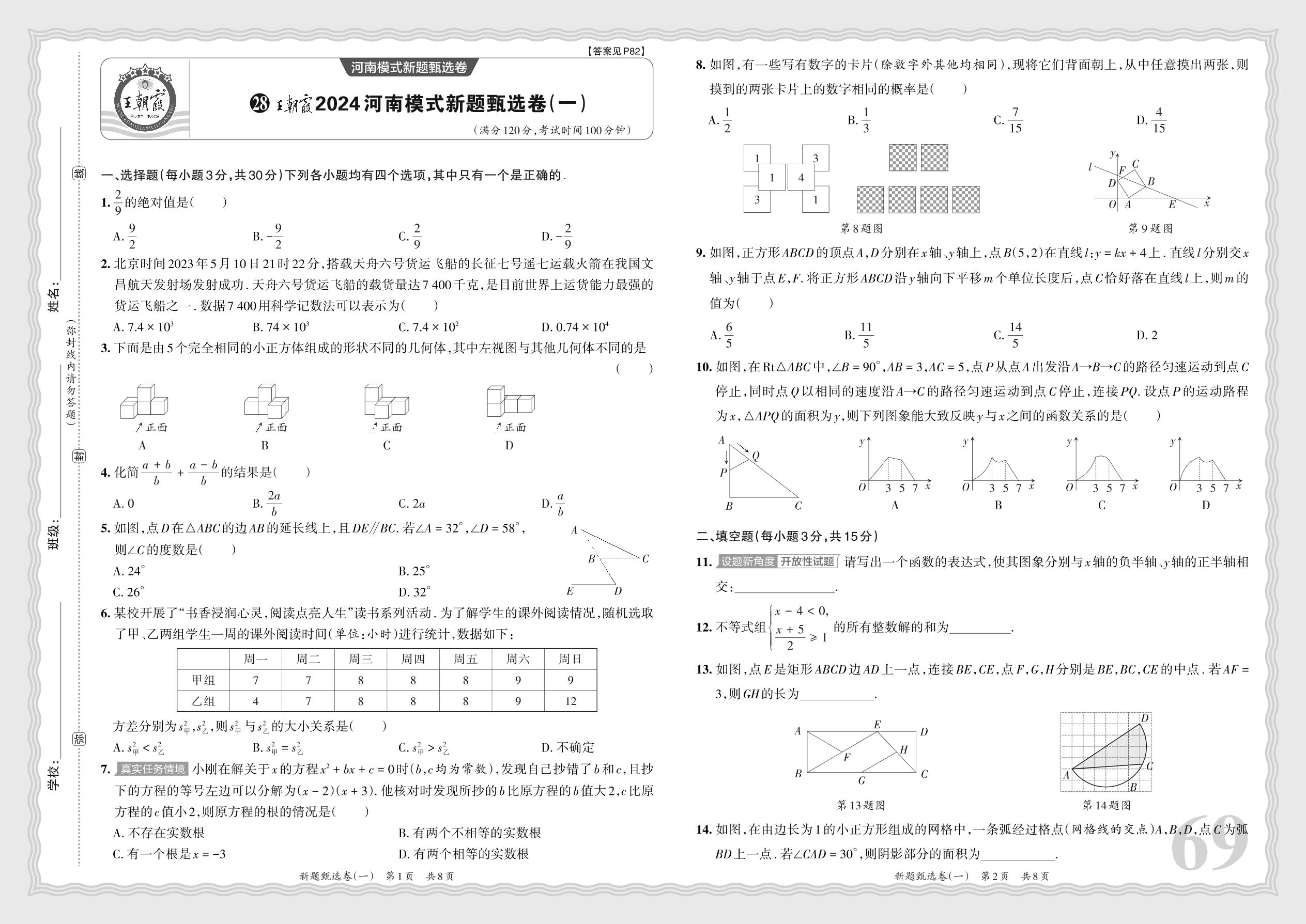 王朝霞2024河南模式新题甄选卷(一)·中考数学【28】