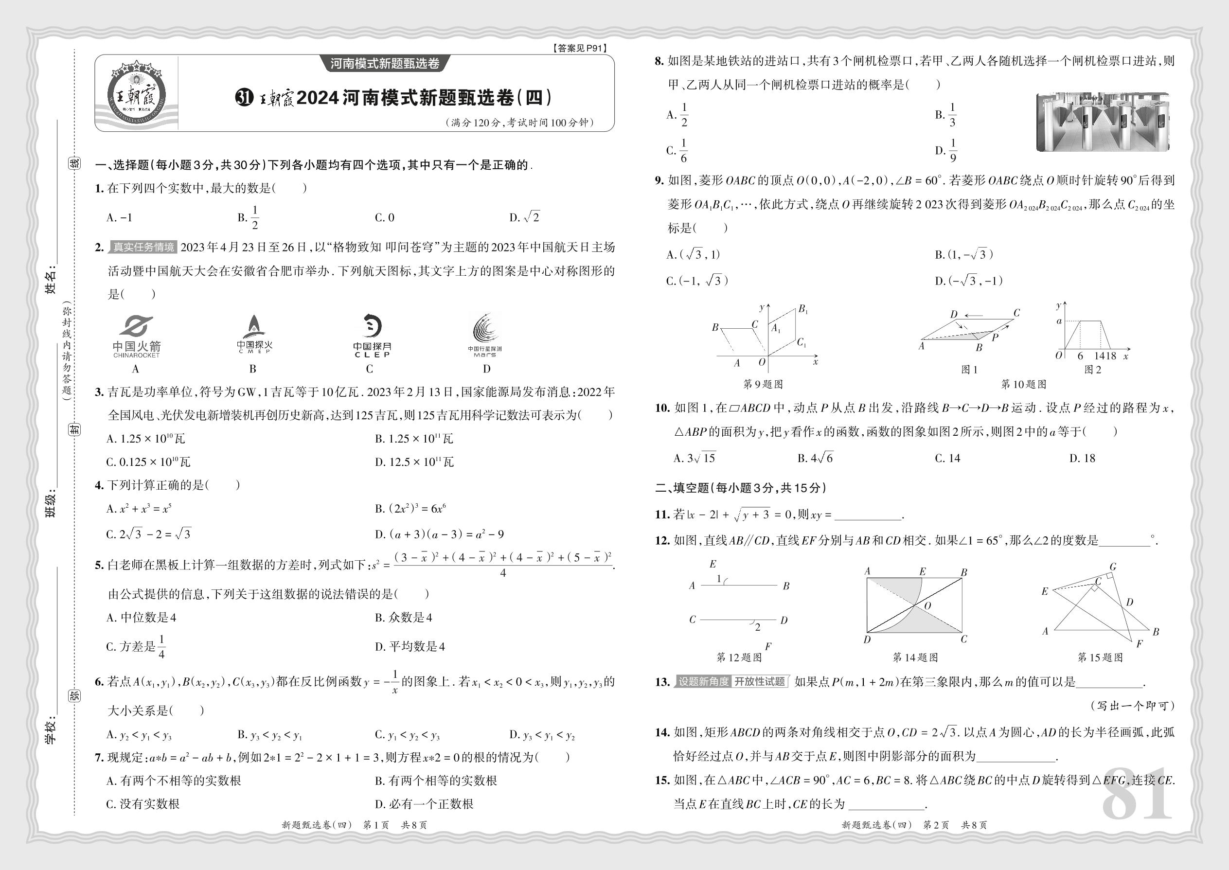 王朝霞2024河南模式新题甄选卷(四)·中考数学【31】