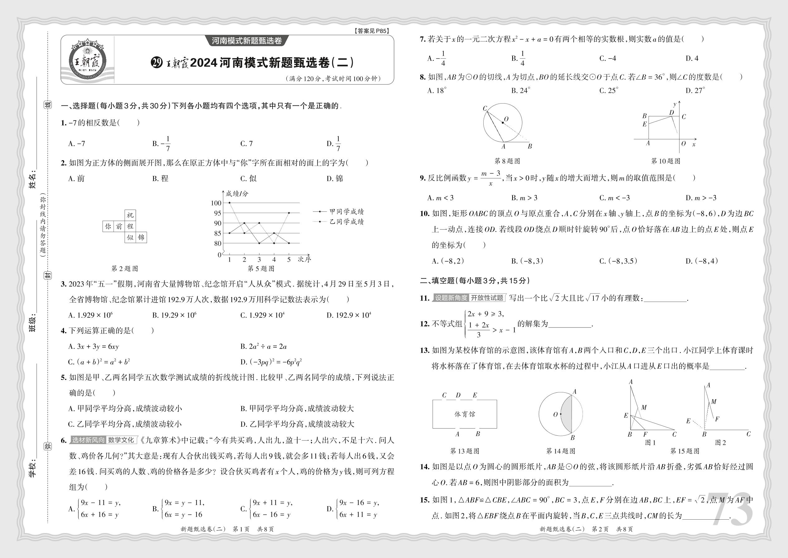 王朝霞2024河南模式新题甄选卷(二)·中考数学【29】