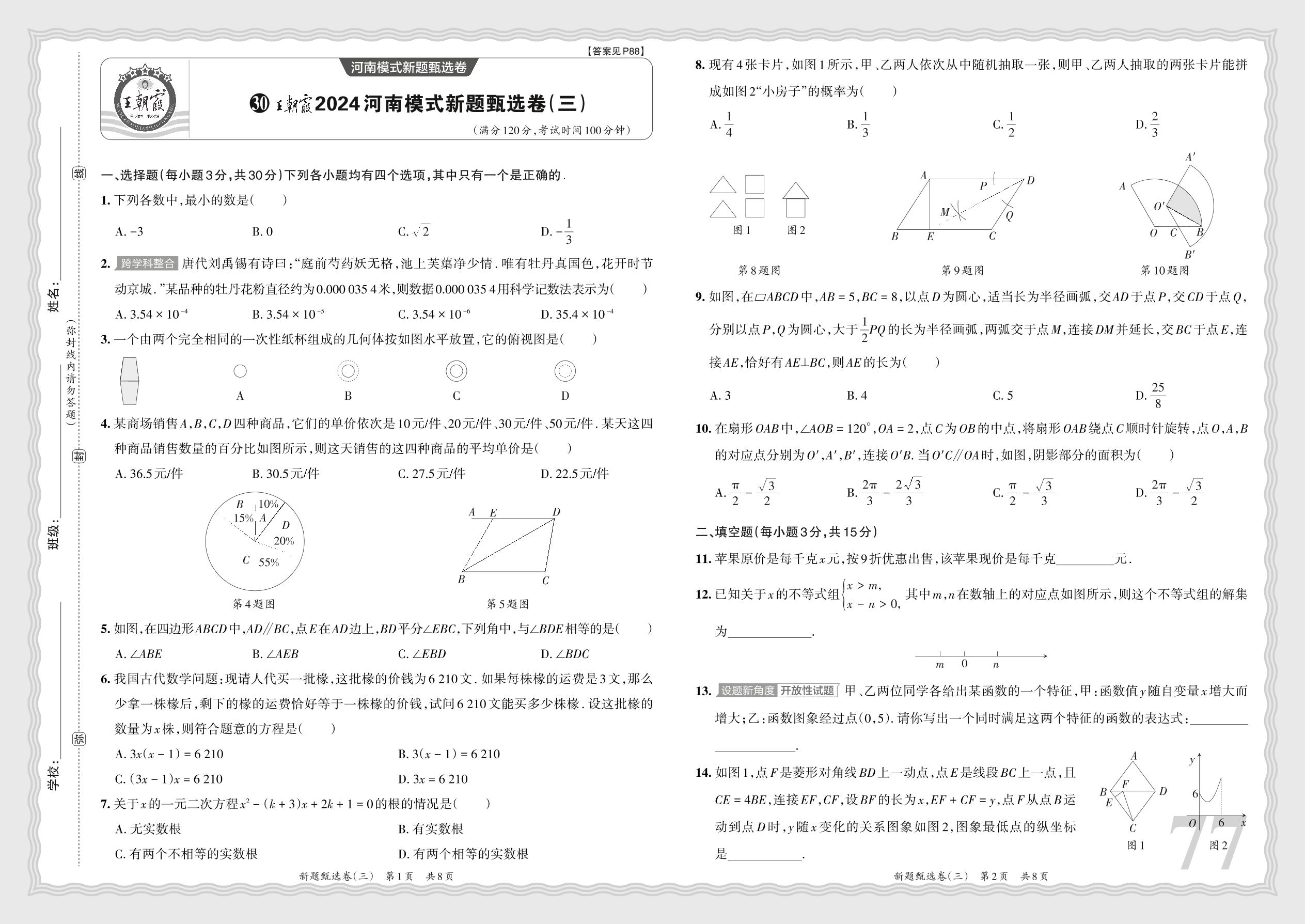 王朝霞2024河南模式新题甄选卷(三)·中考数学【30】