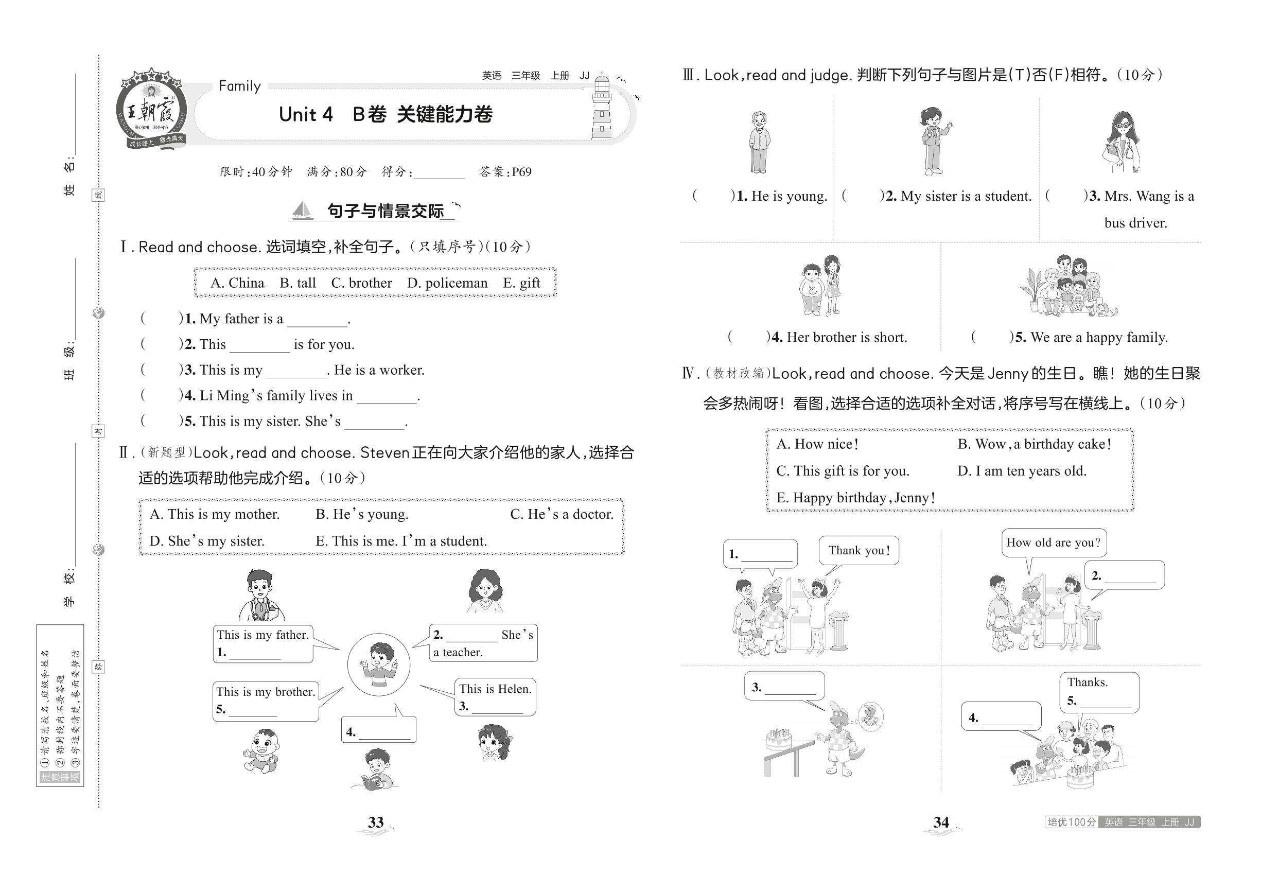 2023上册三年级英语冀教版 Unit 4 B卷 关键能力卷