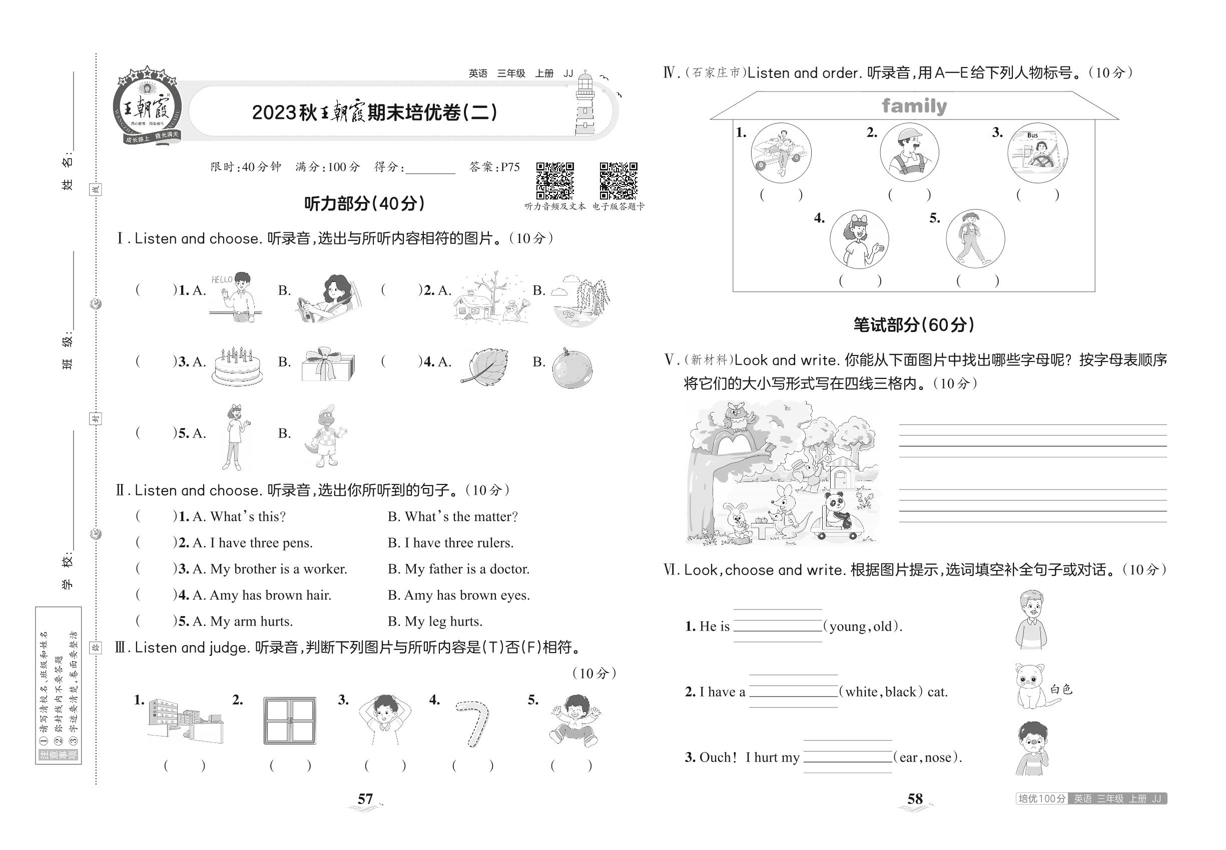 2023上册三年级英语冀教版 2023秋王朝霞期末培优卷(二)