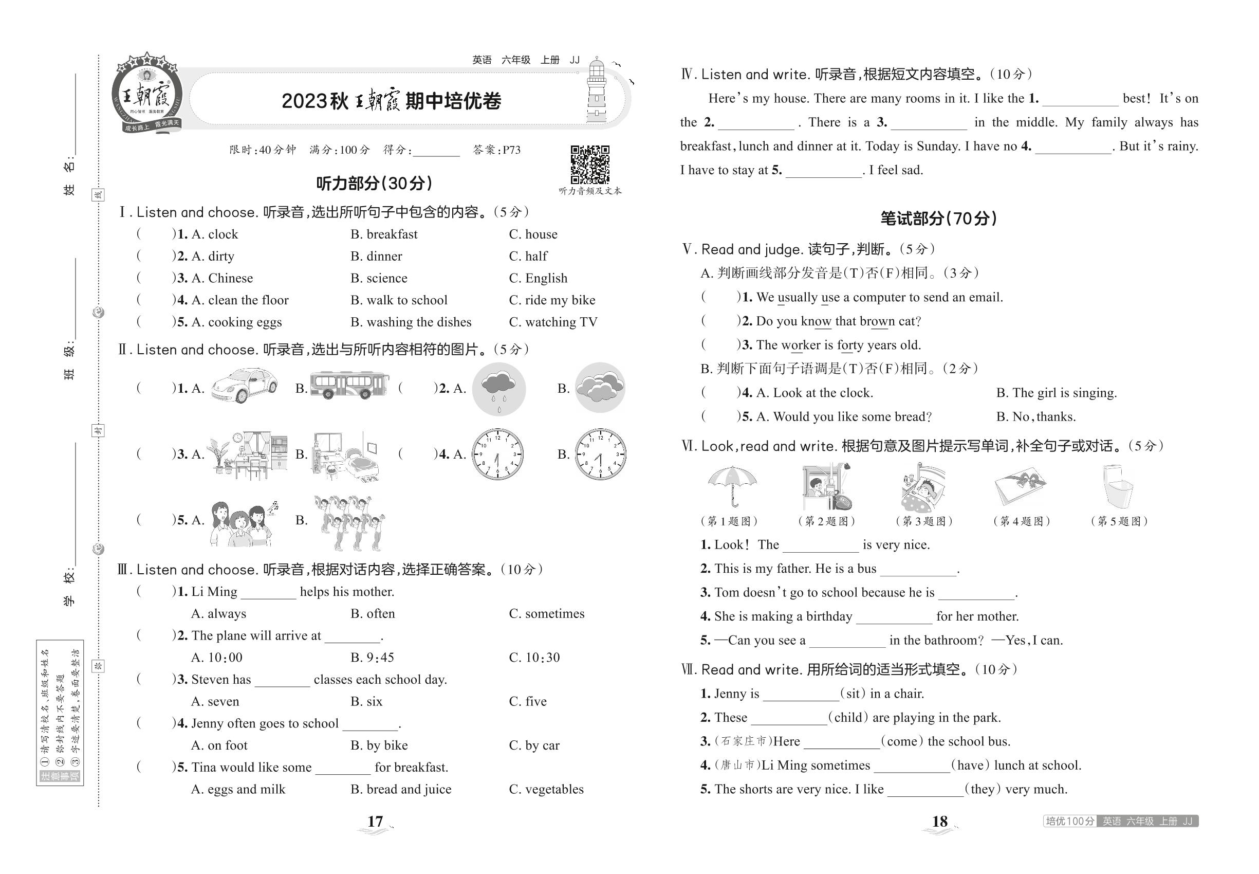2023上册六年级英语冀教版 2023秋王朝霞期中培优卷