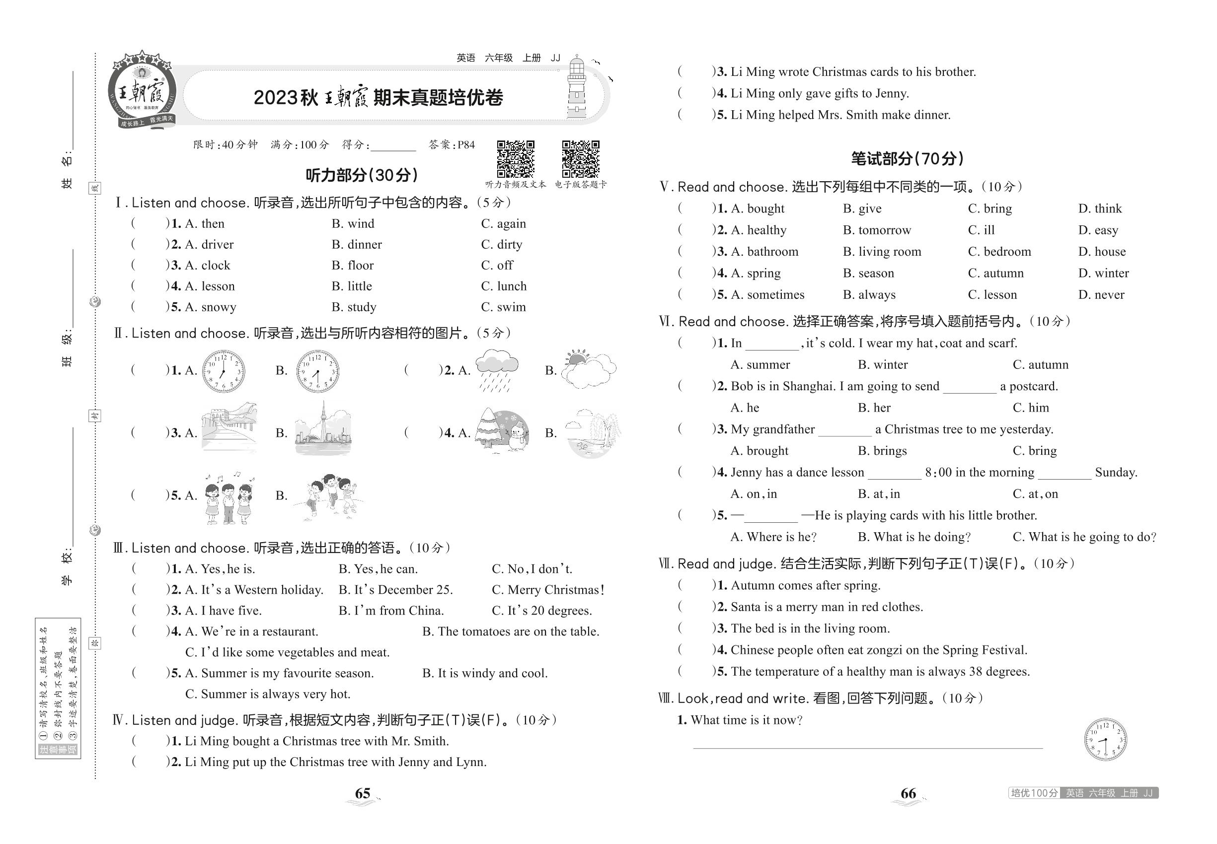 2023上册六年级英语冀教版 2023秋王朝霞期末真题培优卷