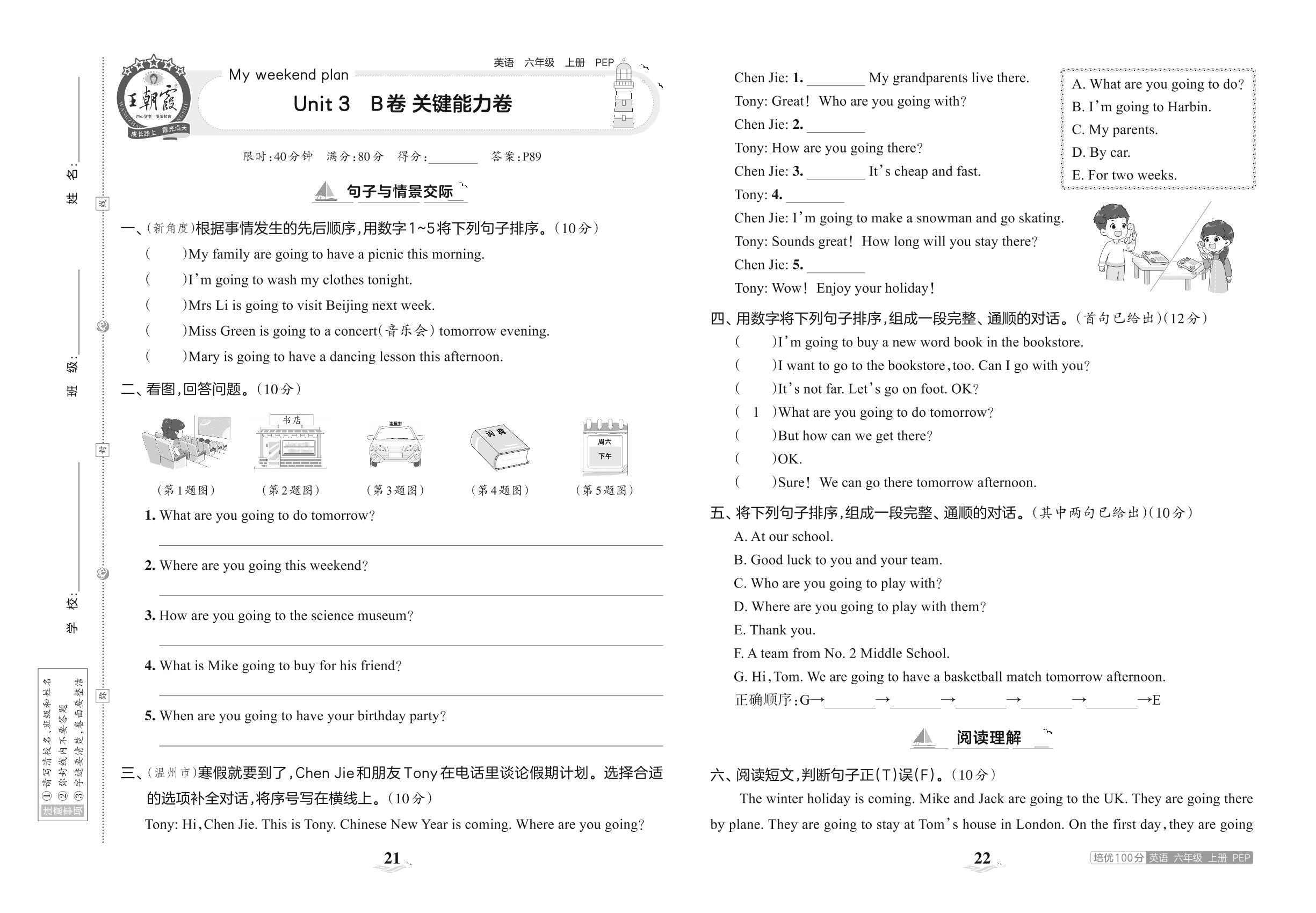 2023上册六年级英语人教PEP版 Unit 3 B卷 关键能力卷