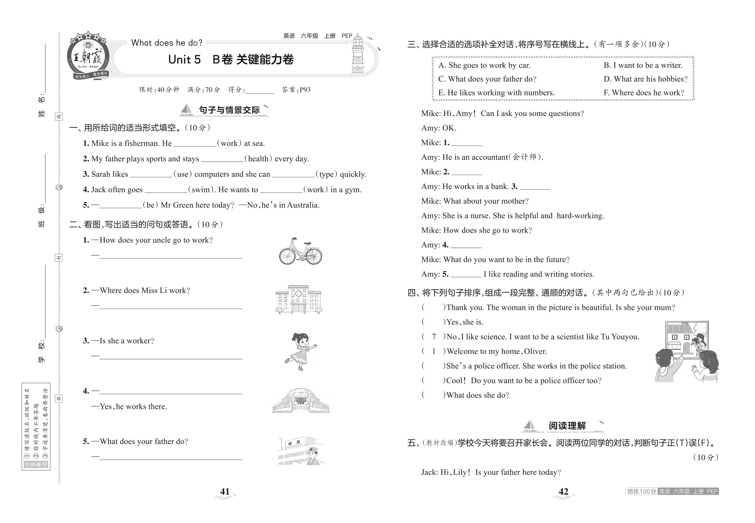 2023上册六年级英语人教PEP版 Unit 5 B卷 关键能力卷