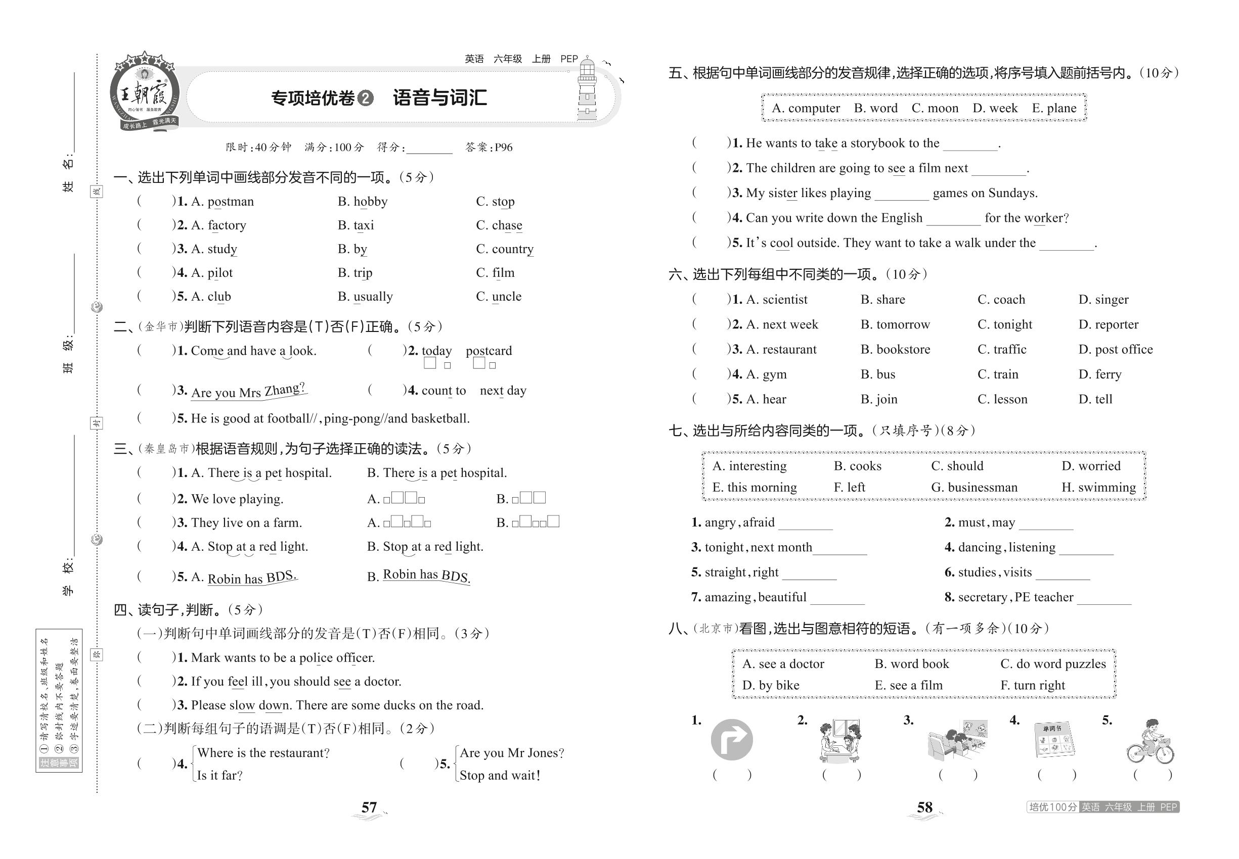 2023上册六年级英语人教PEP版 专项培优卷 2 语音与词汇