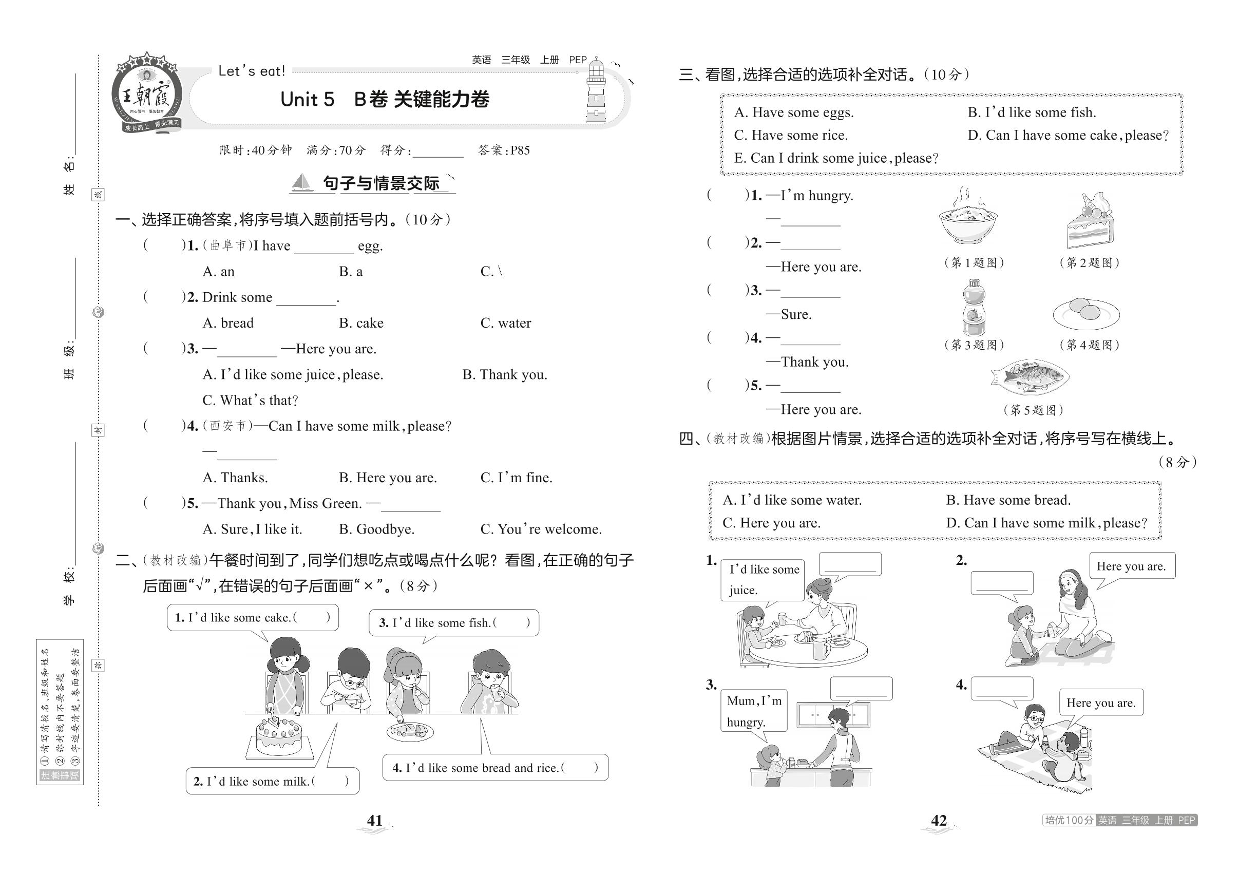 2023上册三年级英语人教PEP版 Unit 5 B卷 关键能力卷