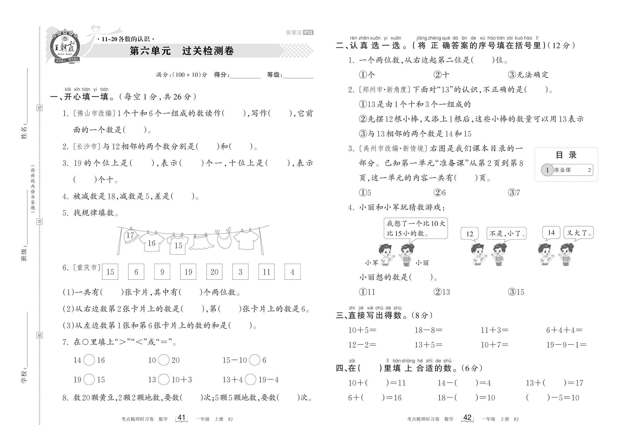 2023上册一年级数学人教版 第六单元 过关检测卷