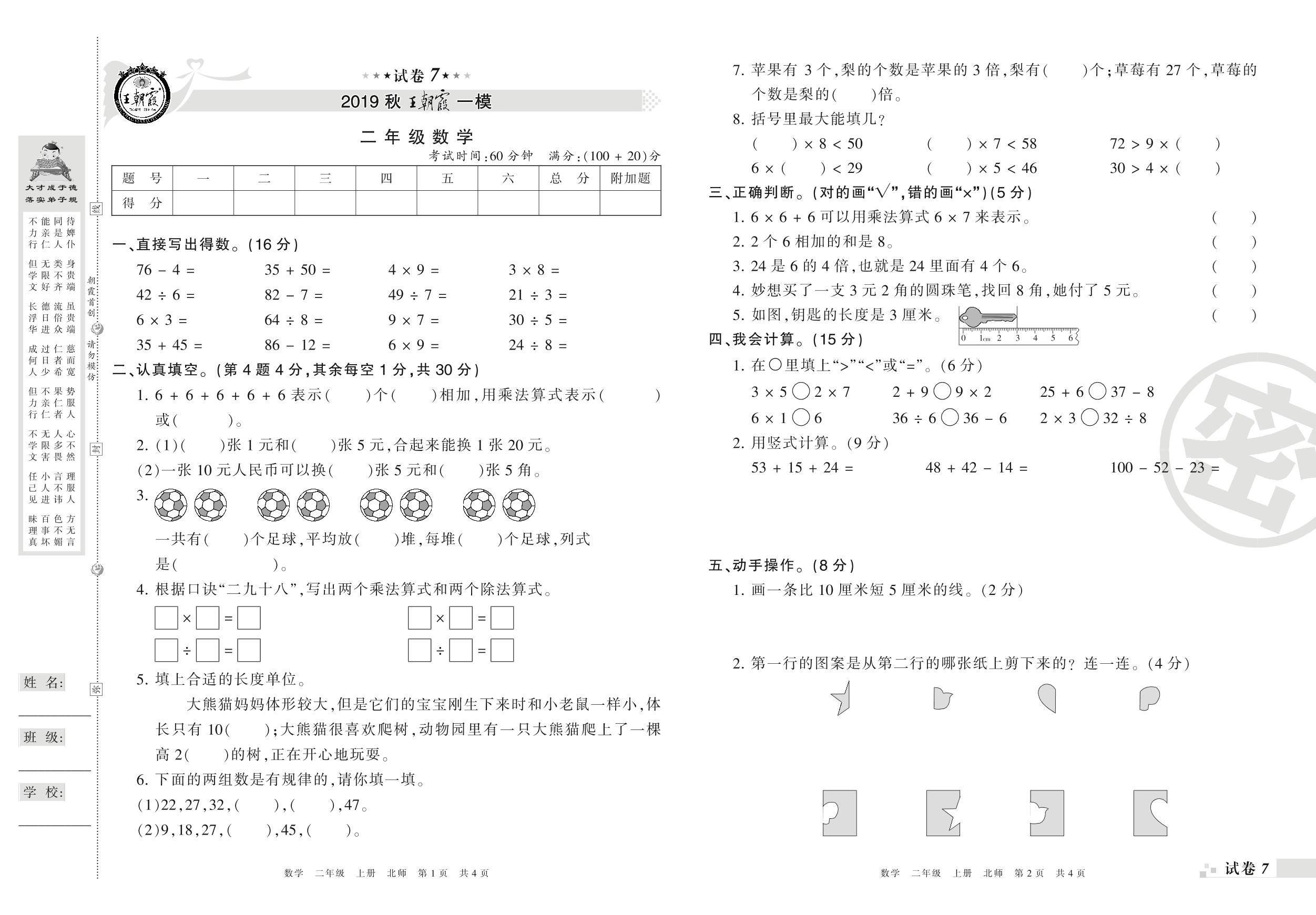 王朝霞期末模拟卷二年级上册数学(北师版)_R21080392448【7】