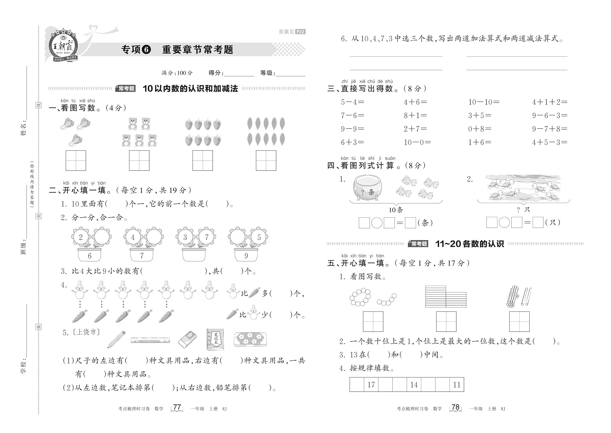 2023上册一年级数学人教版 专项6 重要章节常考题